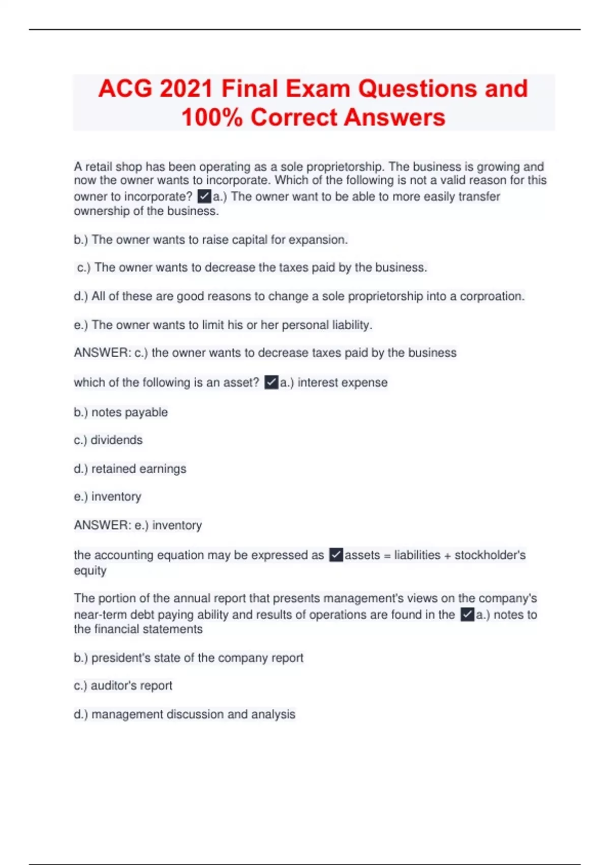 owner to incorporate? ✅a.) The owner want to be able to more easily transfer