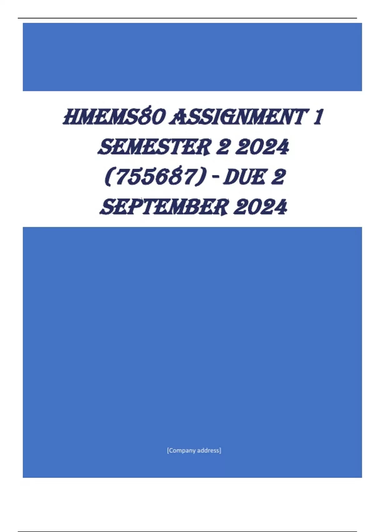 , HMEMS80 Assignment 1 Semester 2 2024 (755687) - DUE 2 September 2024