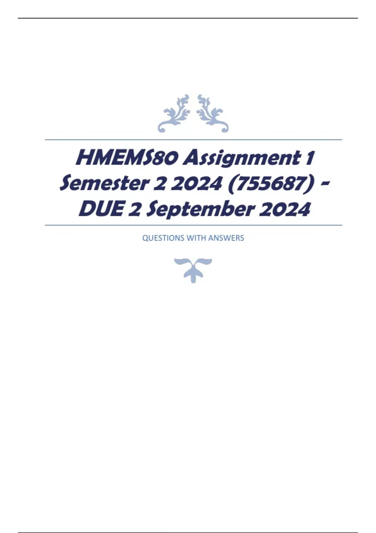 , HMEMS80 Assignment 1 Semester 2 2024 (755687) - DUE 2 September