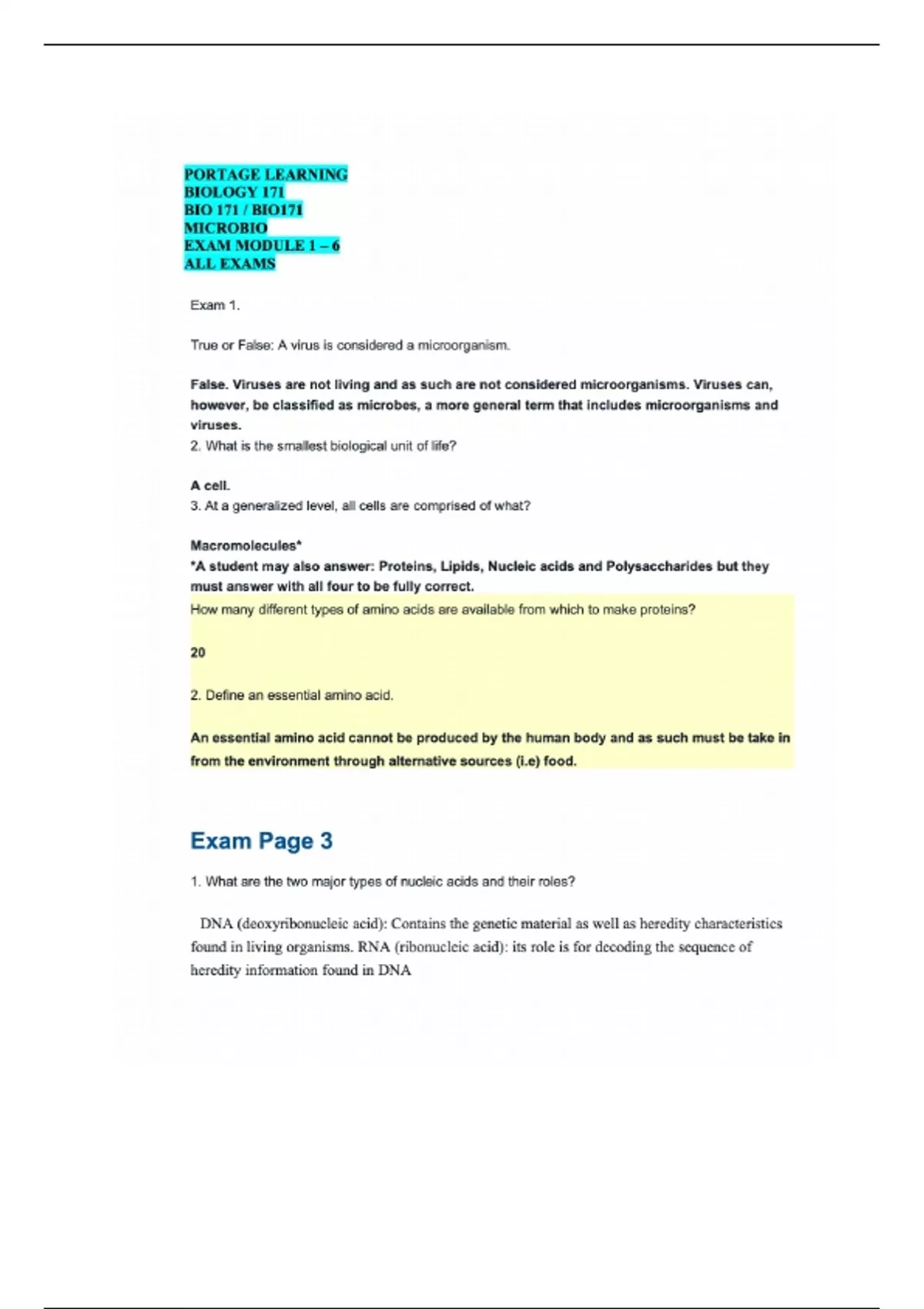 PORTAGE LEARNING BIOD 171 MICROBIOLOGY MODULE EXAMS 1-6 ANSWERS!!! A+++++ 2024!!!!! VERY RECENT