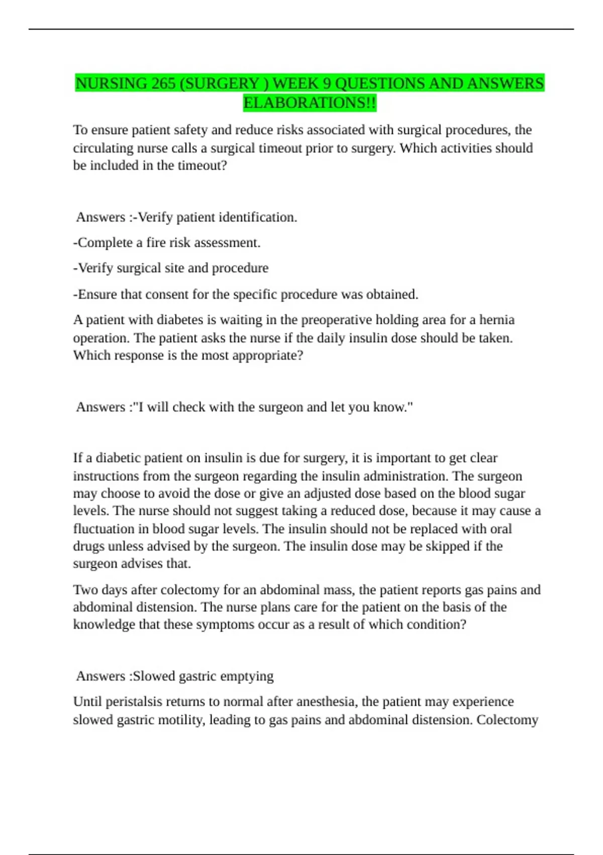 If a diabetic patient on insulin is due for surgery, it is important to get clear