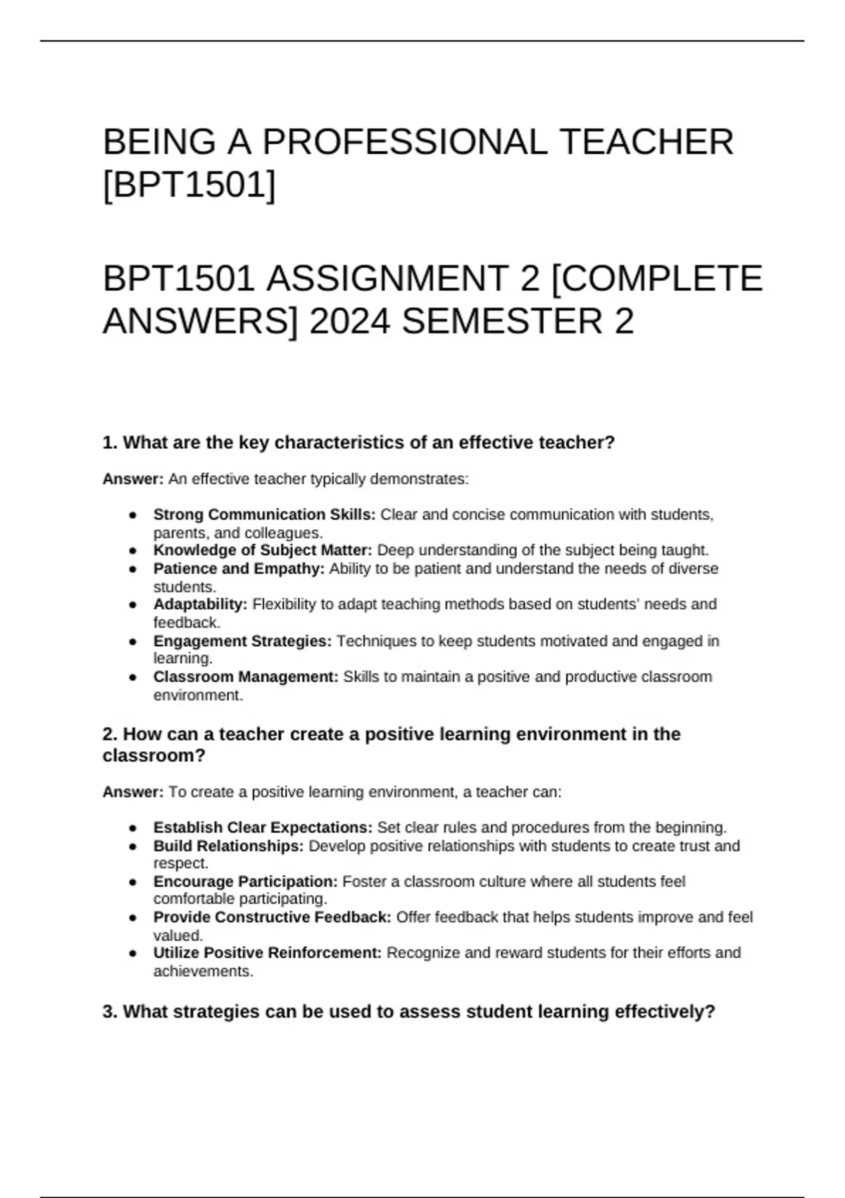 3. What strategies can be used to assess student learning effectively?