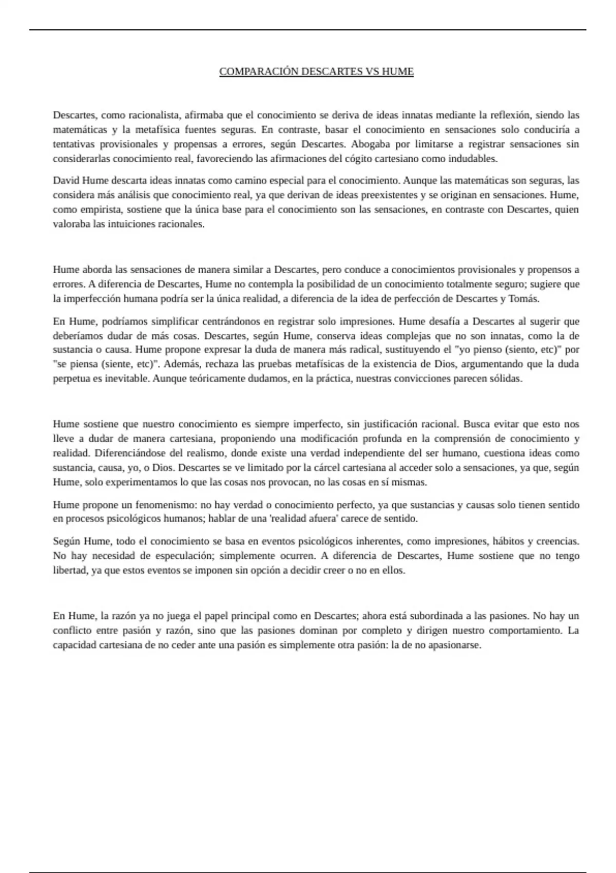 COMPARACIÓN DESCARTES VS HUME