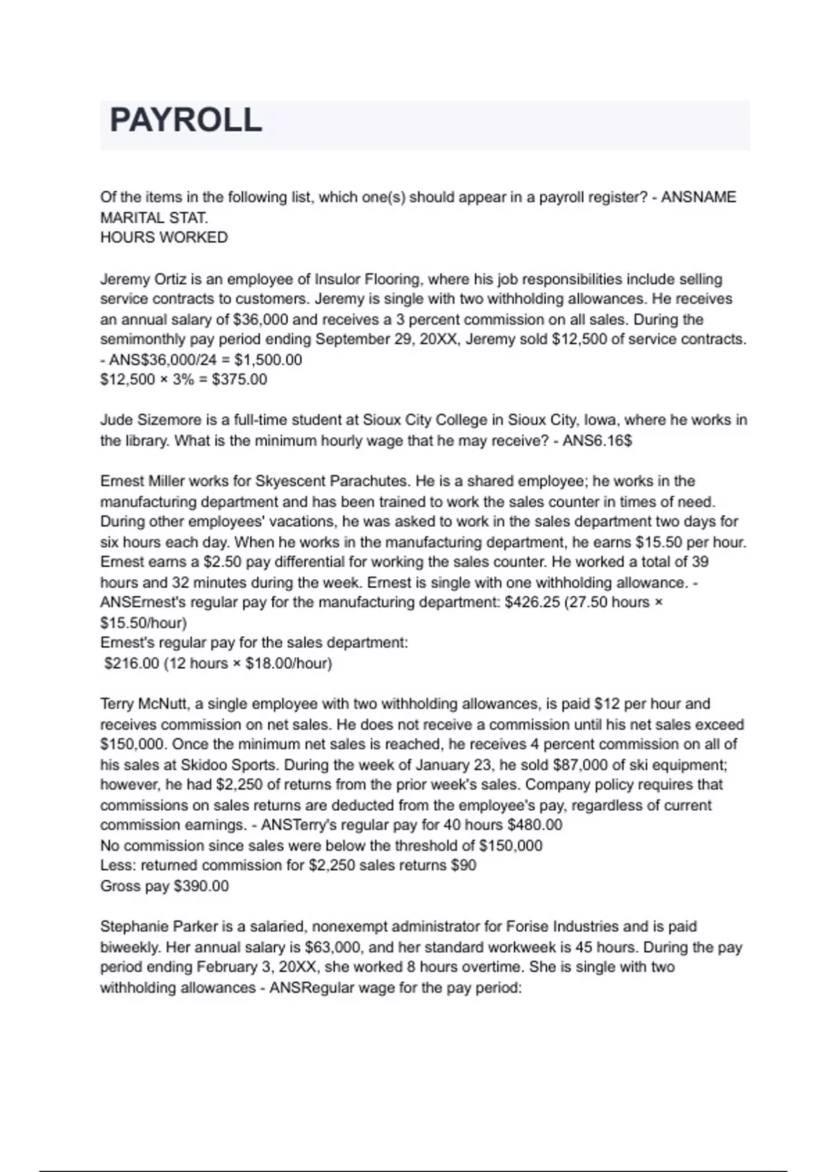 Stephanie Parker is a salaried, nonexempt administrator for Forise Industries and is paid