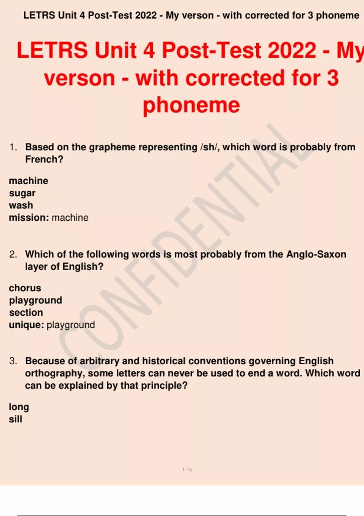 , LETRS Unit 4 Post-Test 2022 - My verson - with corrected for 3 phoneme