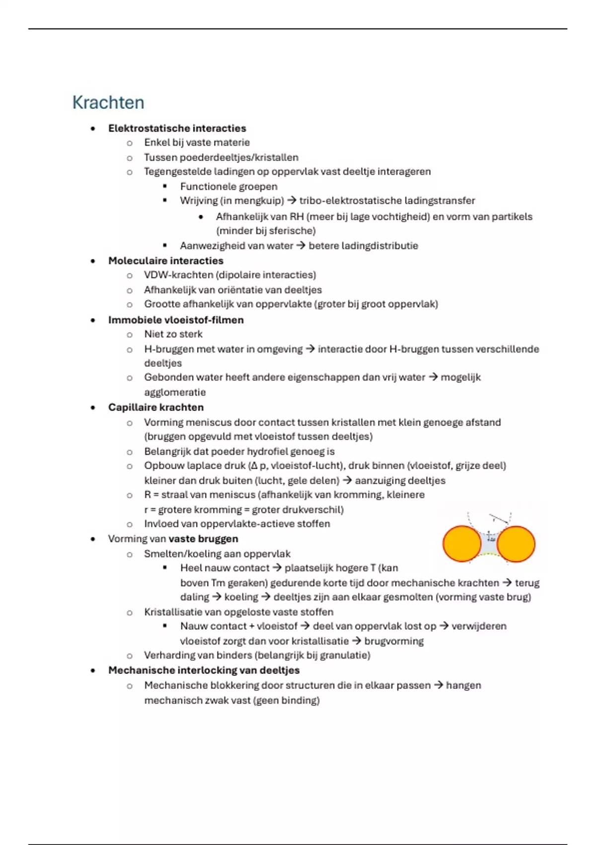 o Opbouw laplace druk (∆ p, vloeistof-lucht), druk binnen (vloeistof,