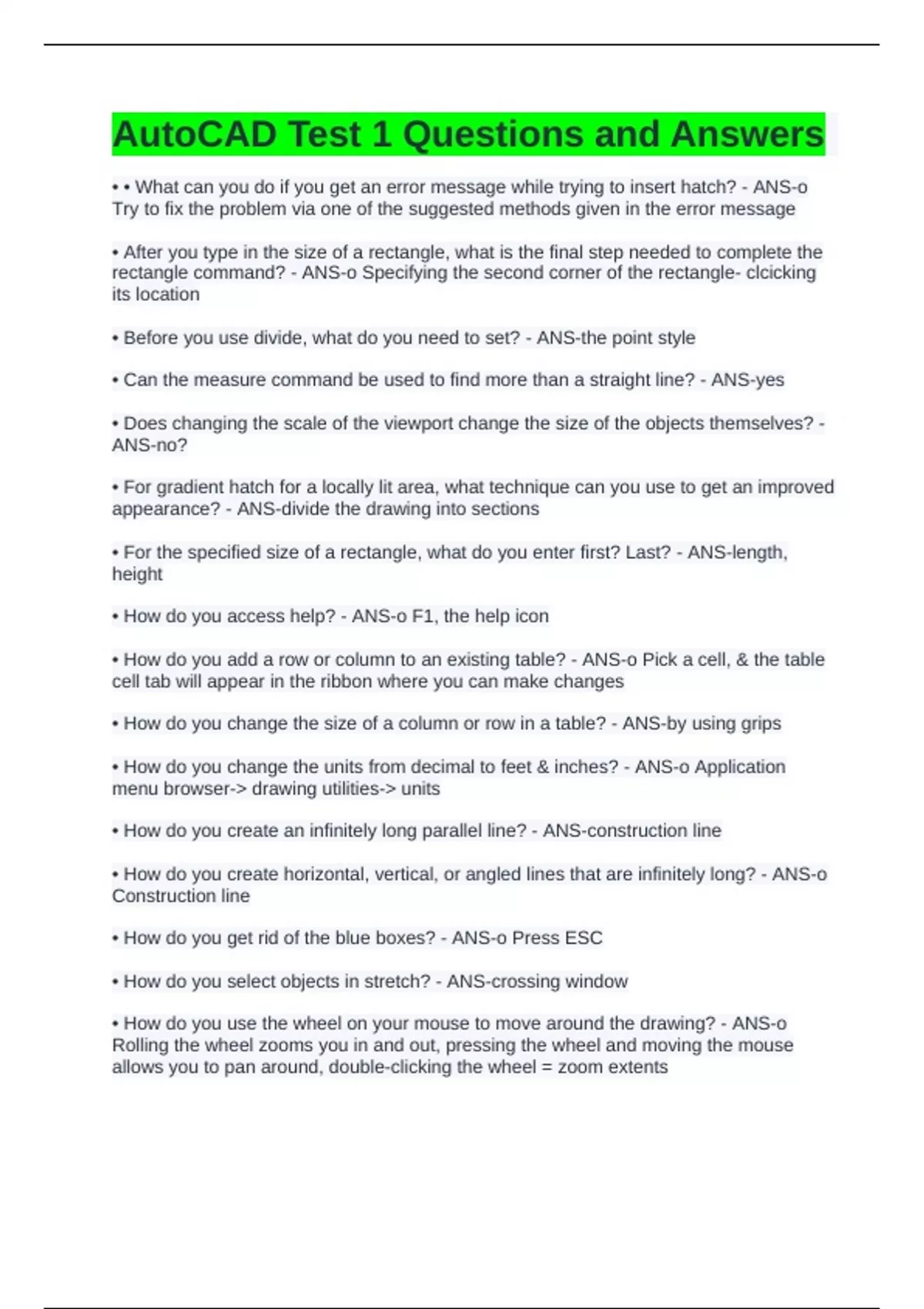 AutoCAD Test 1 Questions and Answers