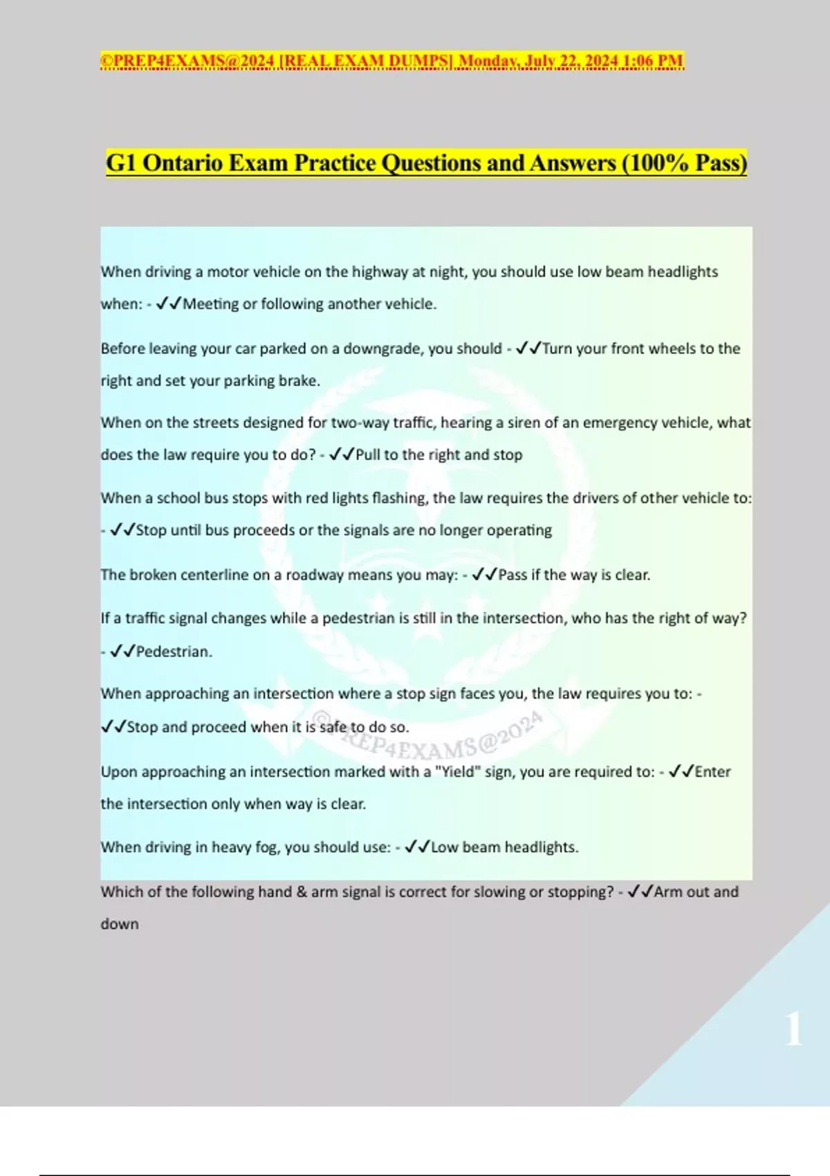 G1 Ontario Exam Practice Questions and Answers (100% Pass)