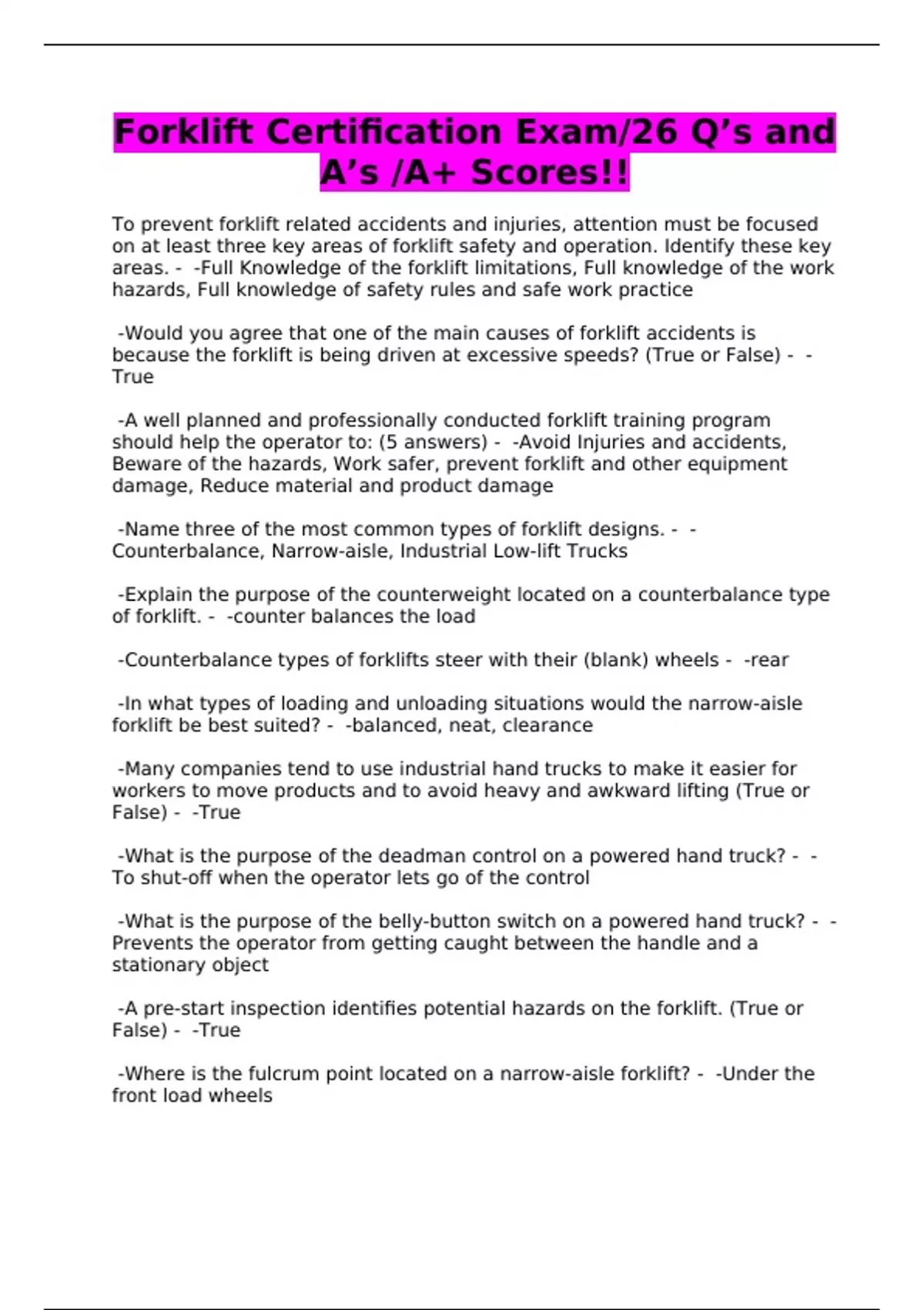 -A pre-start inspection identifies potential hazards on the forklift. (True or