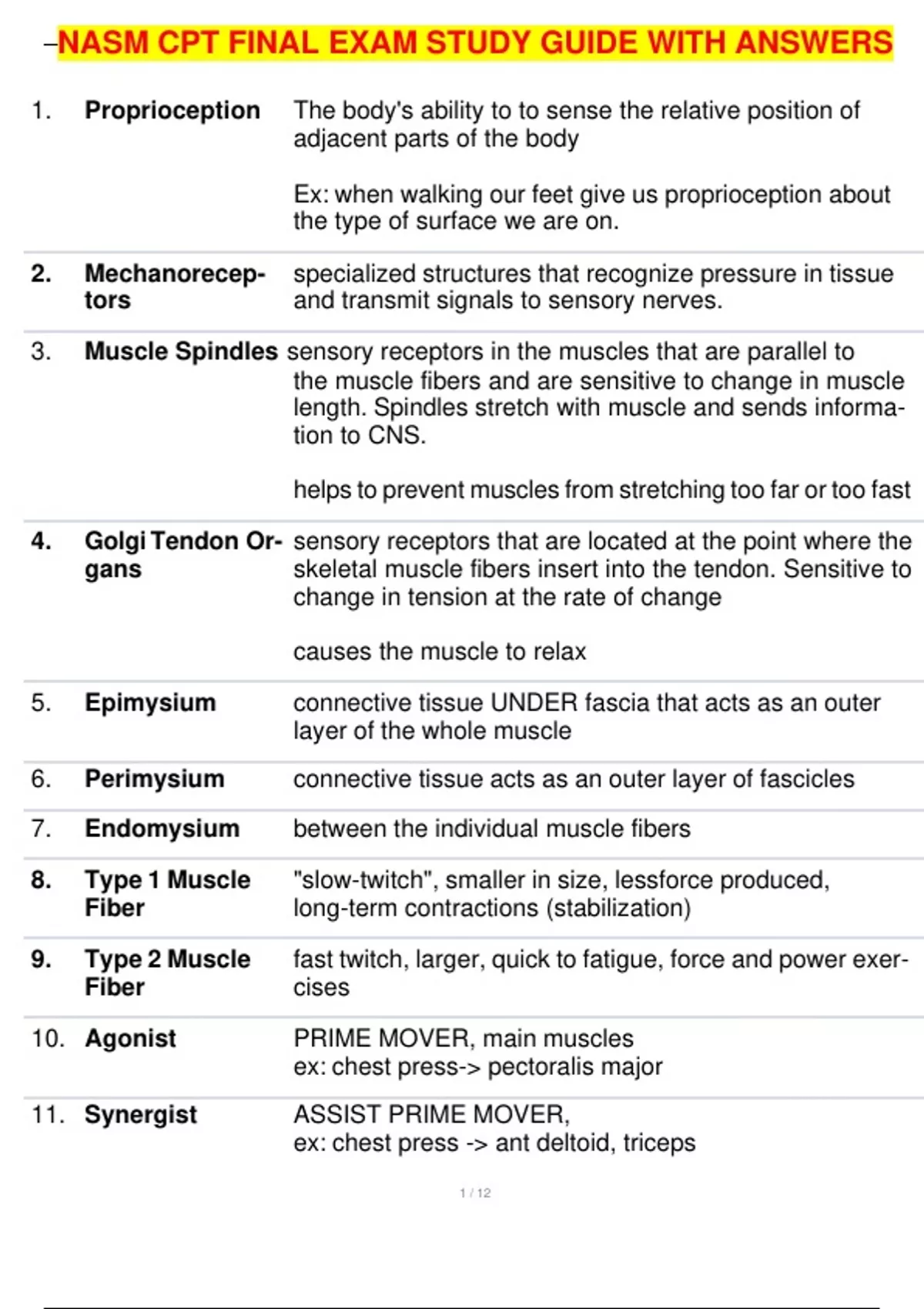 , NASM CPT FINAL EXAM STUDY GUIDE WITH ANSWERS