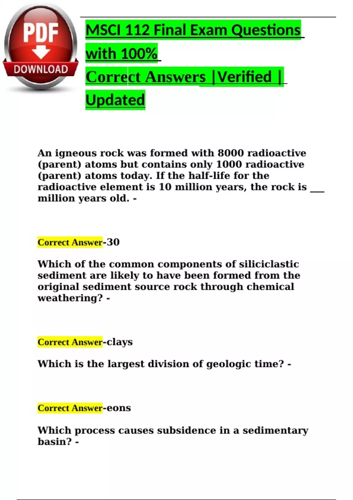 Correct Answer-clays