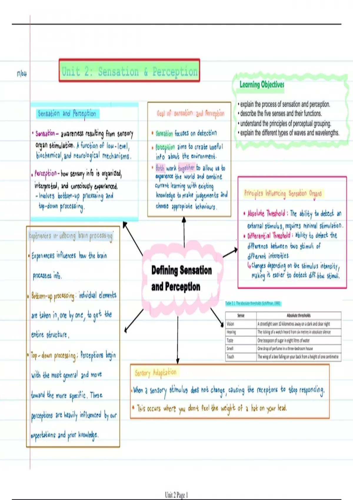 PYC1501 - Unit 2- Sensation and perception summary notes