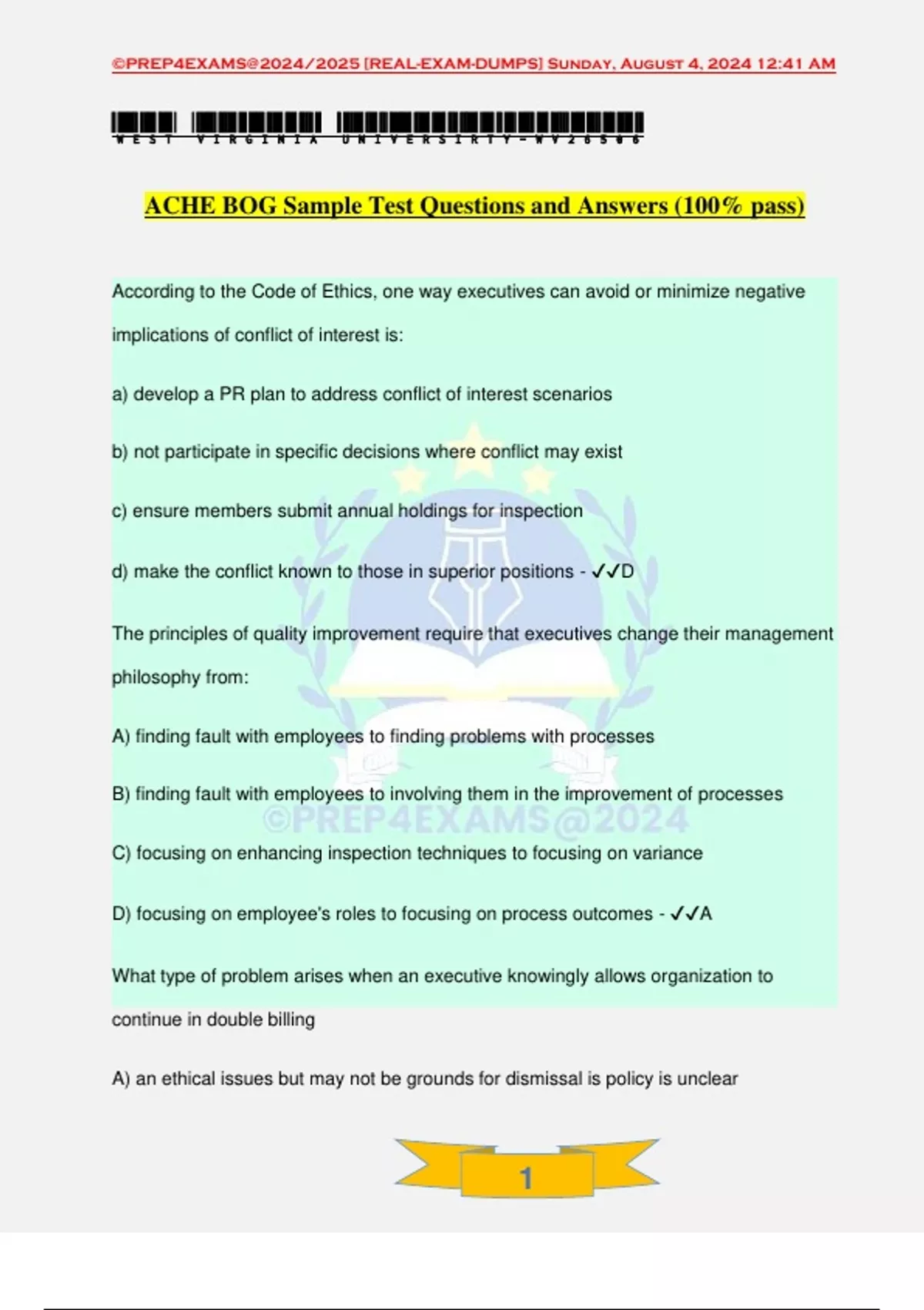 ACHE BOG Sample Test Questions and Answers (100% pass)