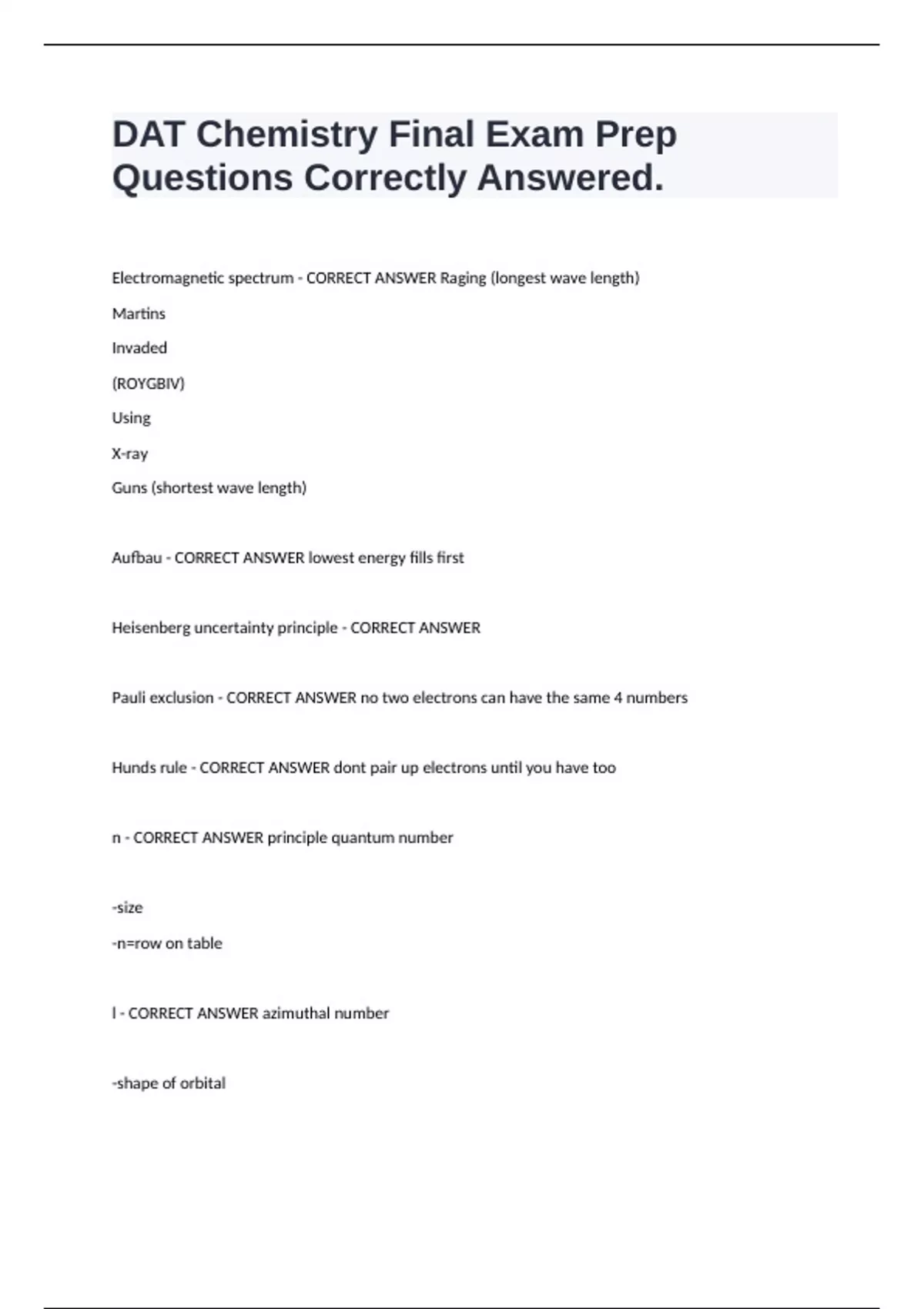 n - CORRECT ANSWER principle quantum number