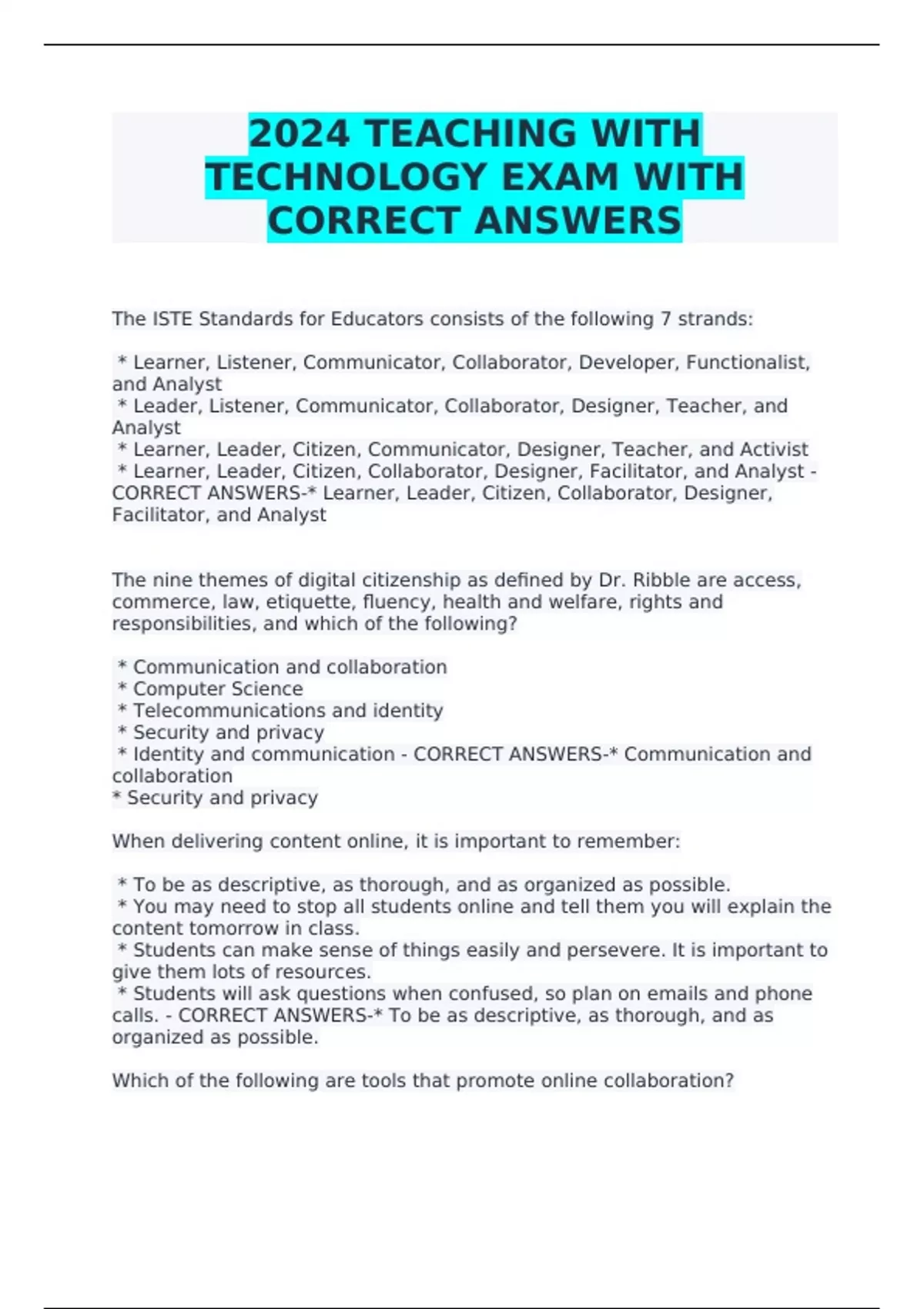 CORRECT ANSWERS-* True. Technology integration can give students the