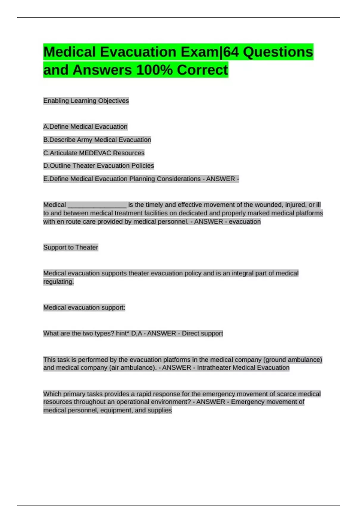 E.Define Medical Evacuation Planning Considerations - ANSWER -