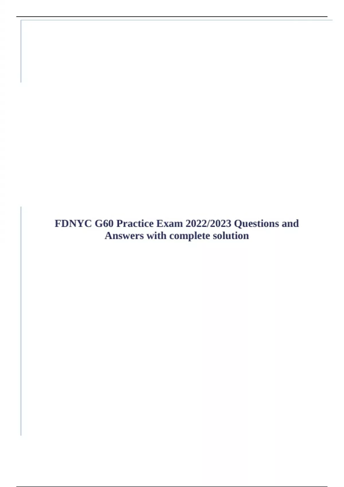, FDNYC G60 Practice Exam 2022/2023 Questions and