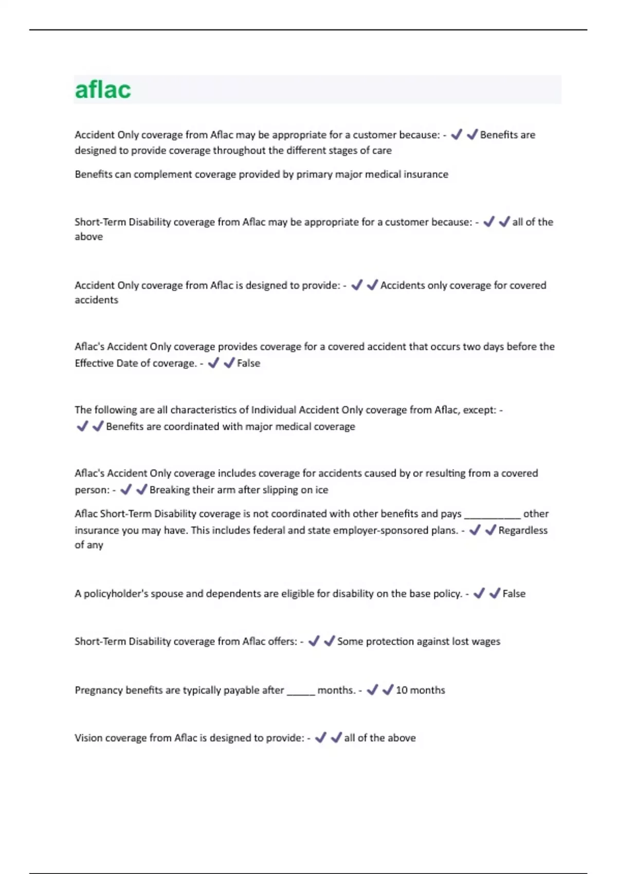 Short-Term Disability coverage from Aflac may be appropriate for a customer because: - all of the