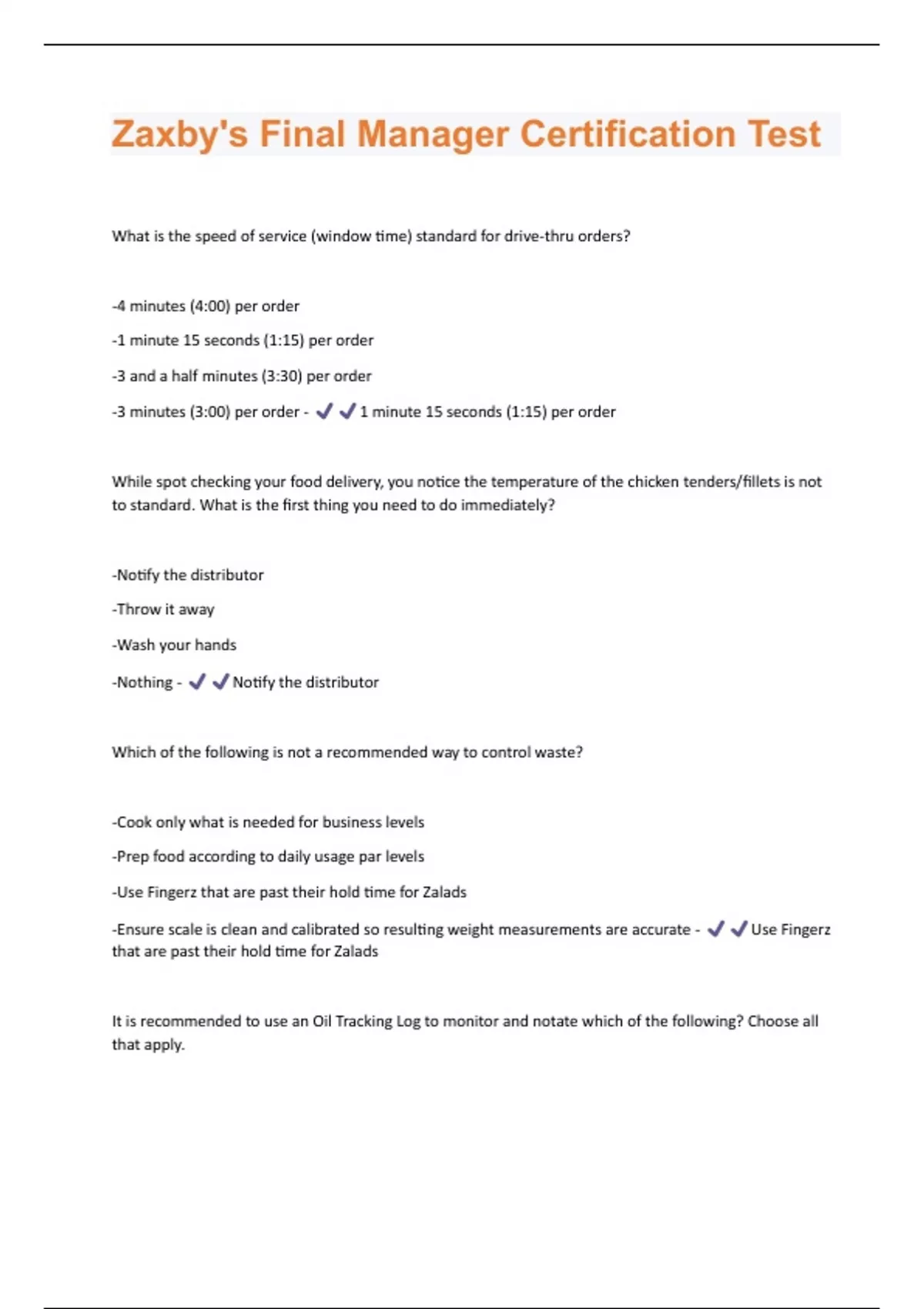 -Zaxby's Core Values Checklist