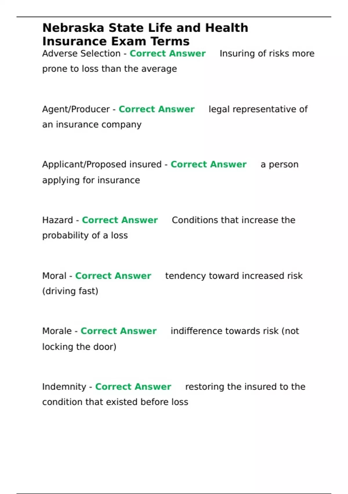 Insurance - Correct Answer ✅Transfer of risk of loss from