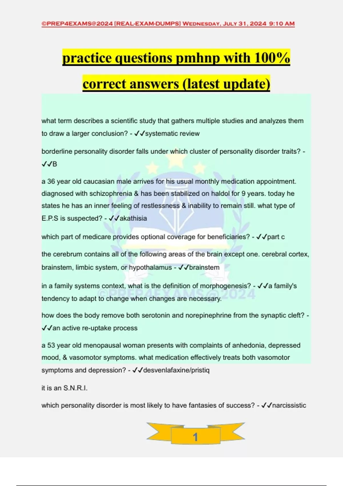 ,©PREP4EXAMS@2024 [REAL-EXAM-DUMPS] Wednesday, July 31, 2024 9:10 AM