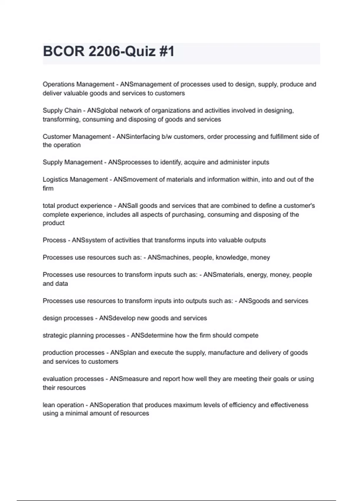 Operations Management - ANSmanagement of processes used to design, supply, produce and