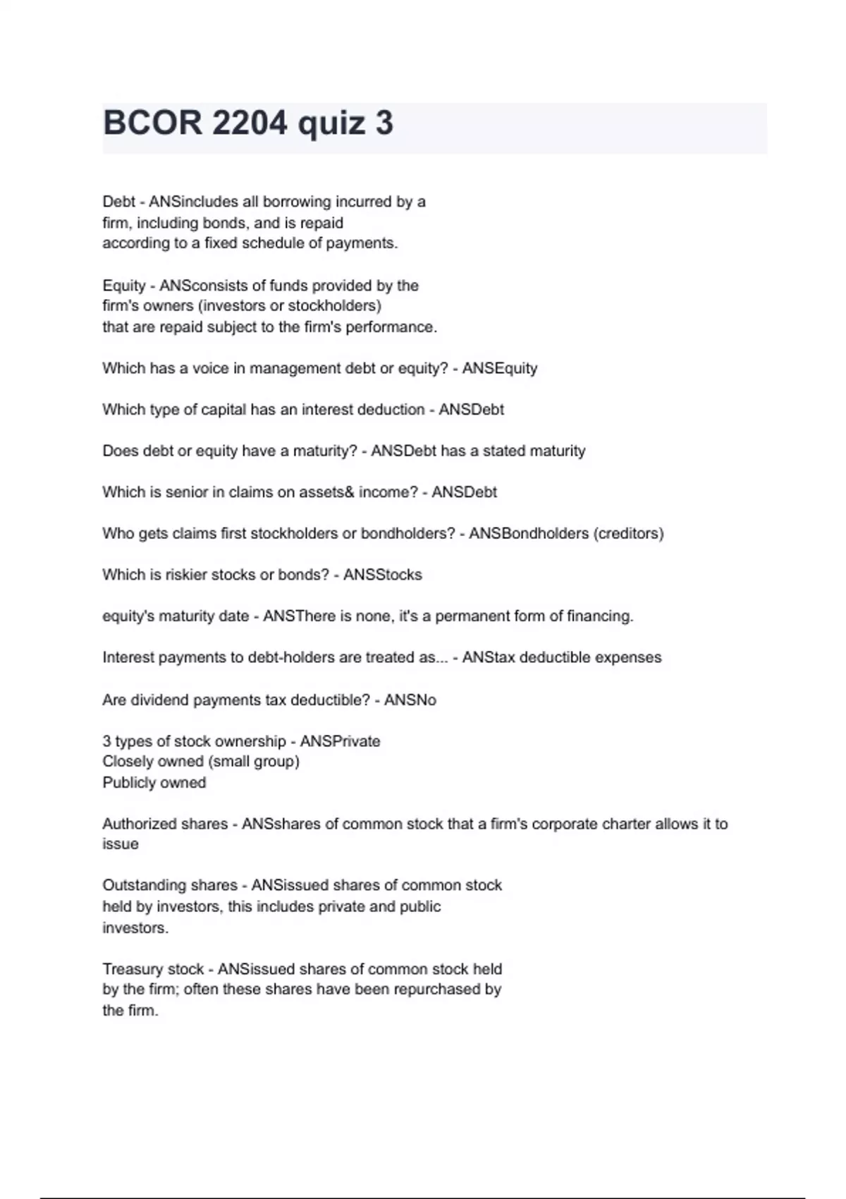 BCOR 2204 quiz 3 and Correct Answers 2024/2025 | Graded A+