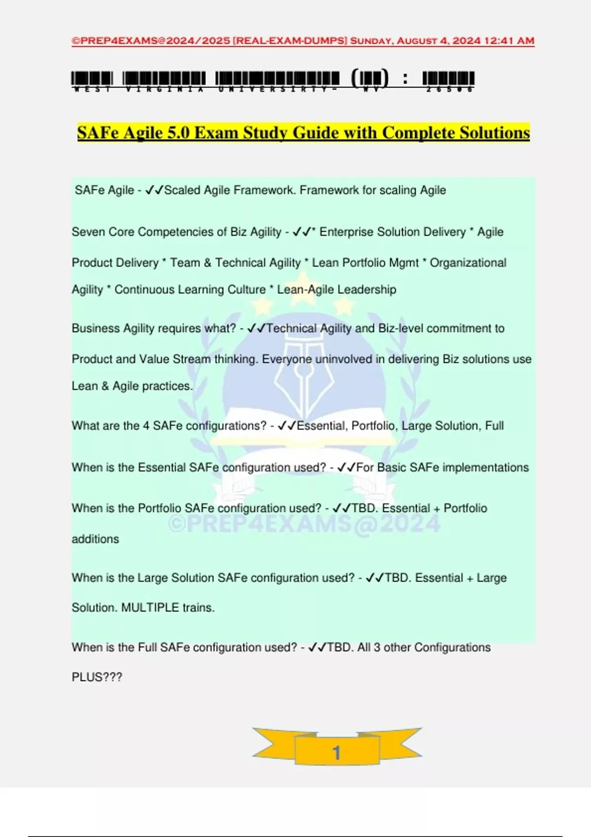 SAFe Agile 5.0 Exam Study Guide with Complete Solutions