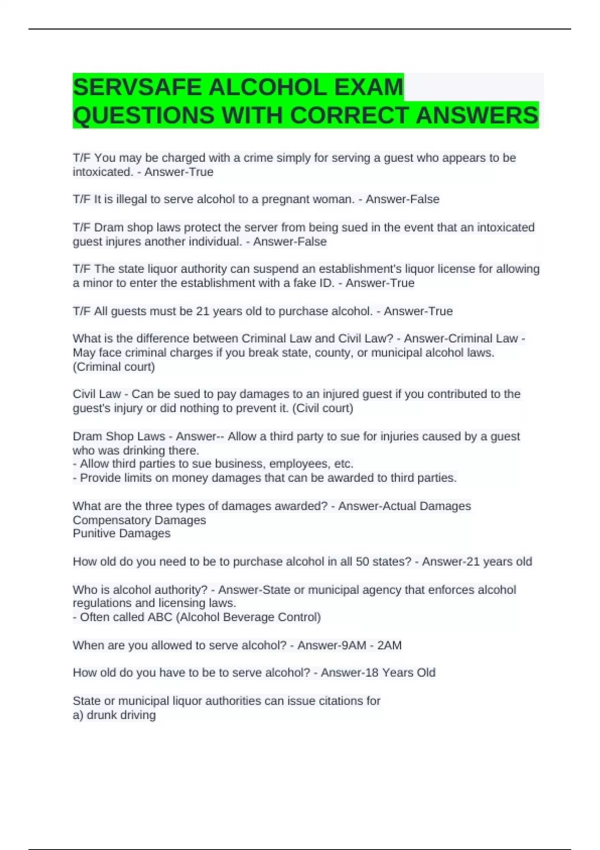 SERVSAFE ALCOHOL EXAM