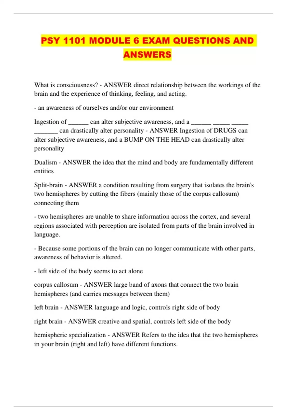 PSY 1101 MODULE 6 EXAM QUESTIONS AND