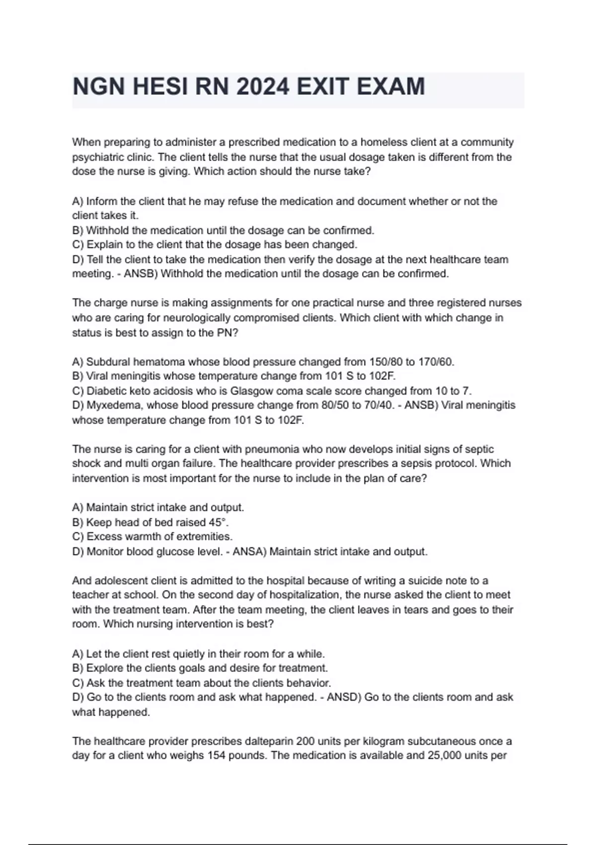 NGN HESI RN 2024 EXIT EXAM