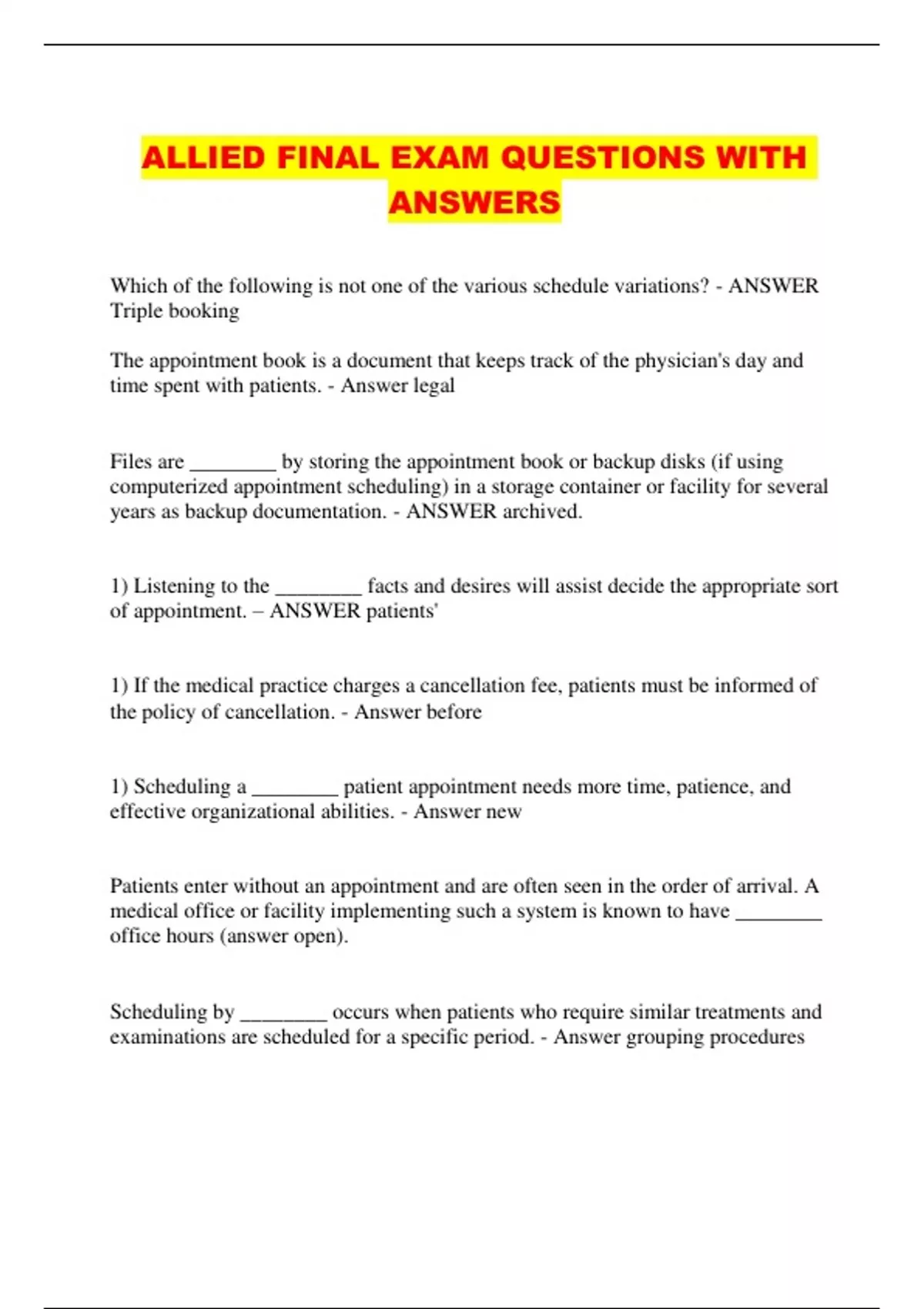 ALLIED FINAL EXAM QUESTIONS WITH
