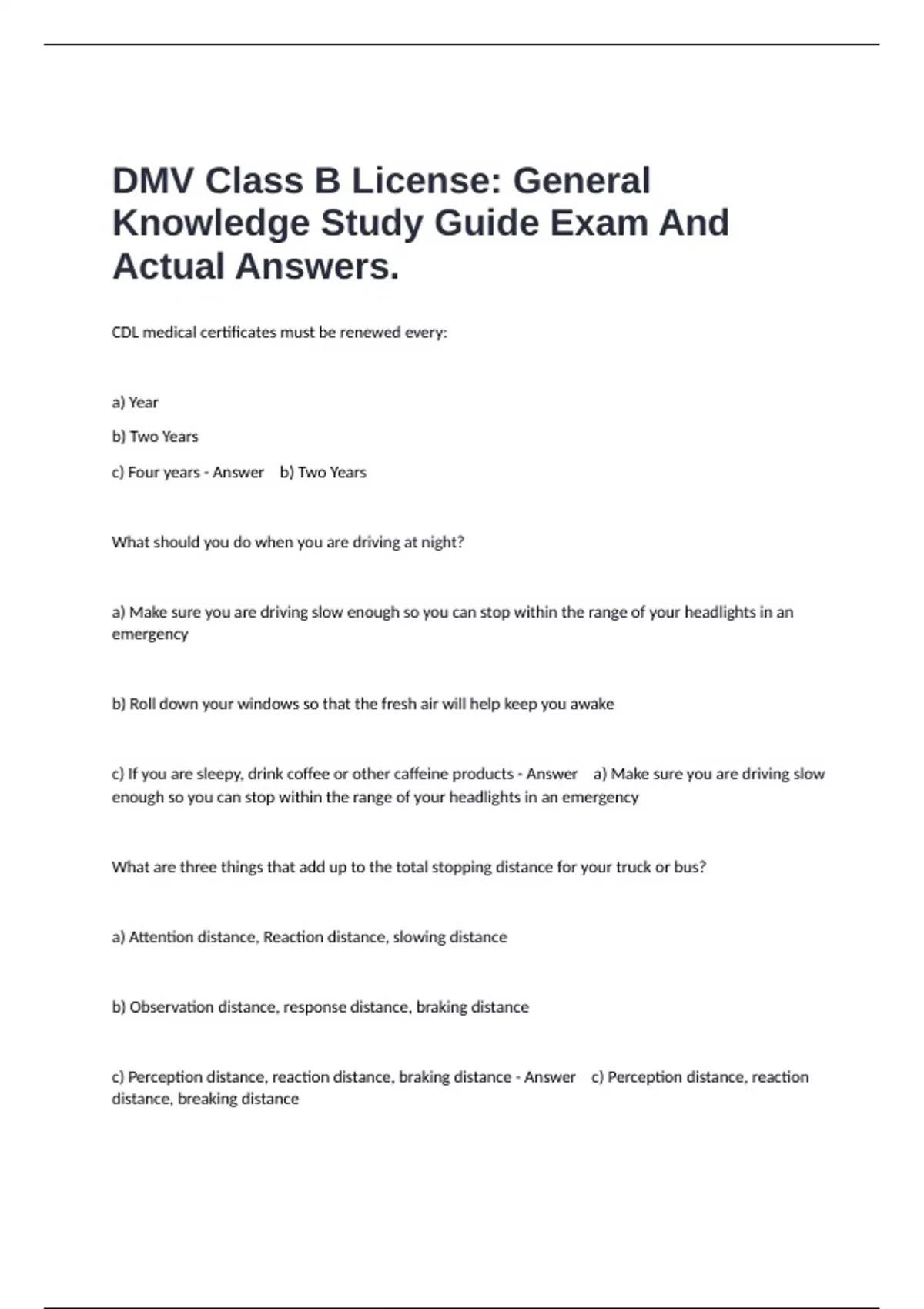 c) If you are sleepy, drink coffee or other caffeine products - Answer a) Make sure you are driving slow