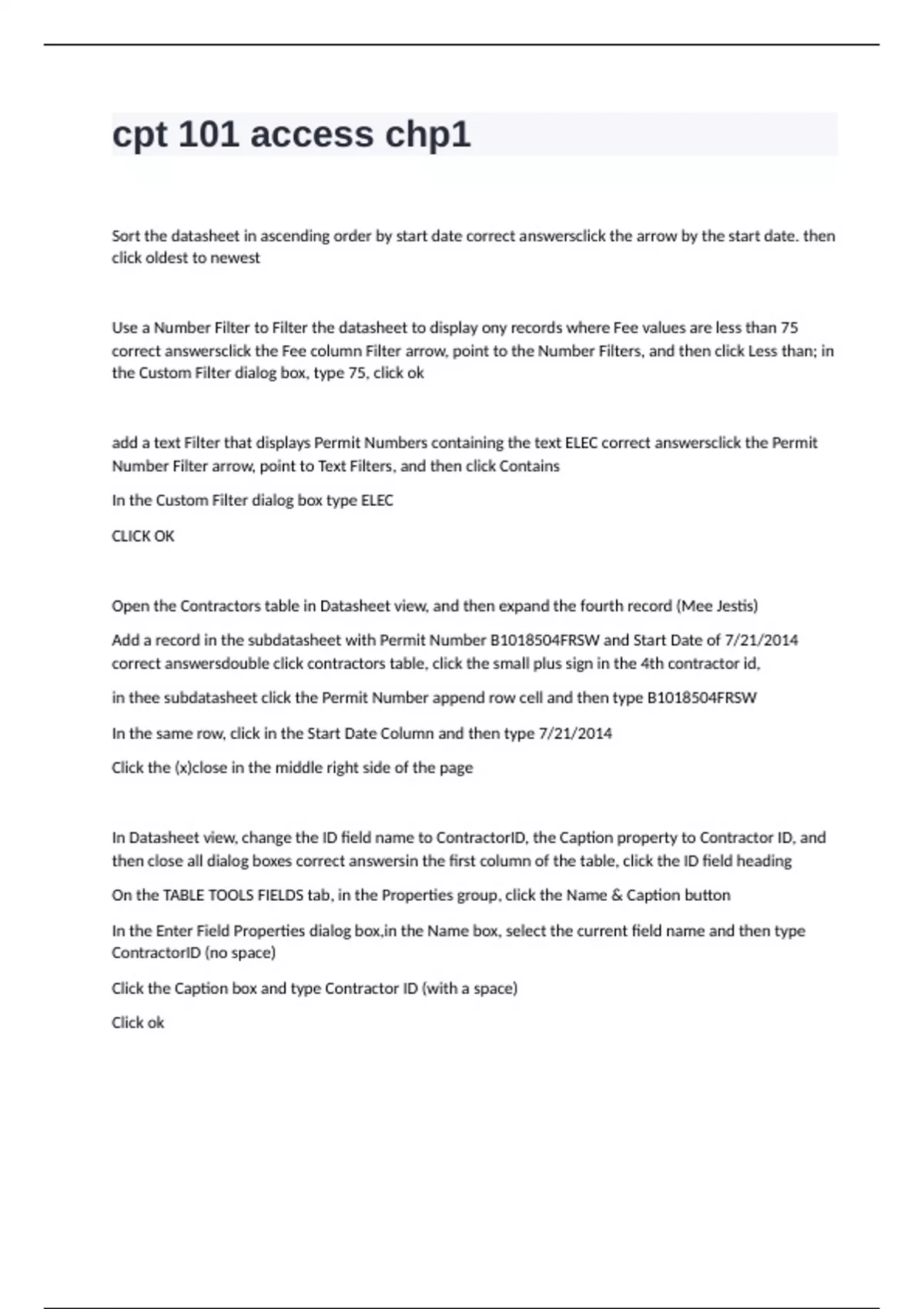 add a text Filter that displays Permit Numbers containing the text ELEC correct answersclick the Permit
