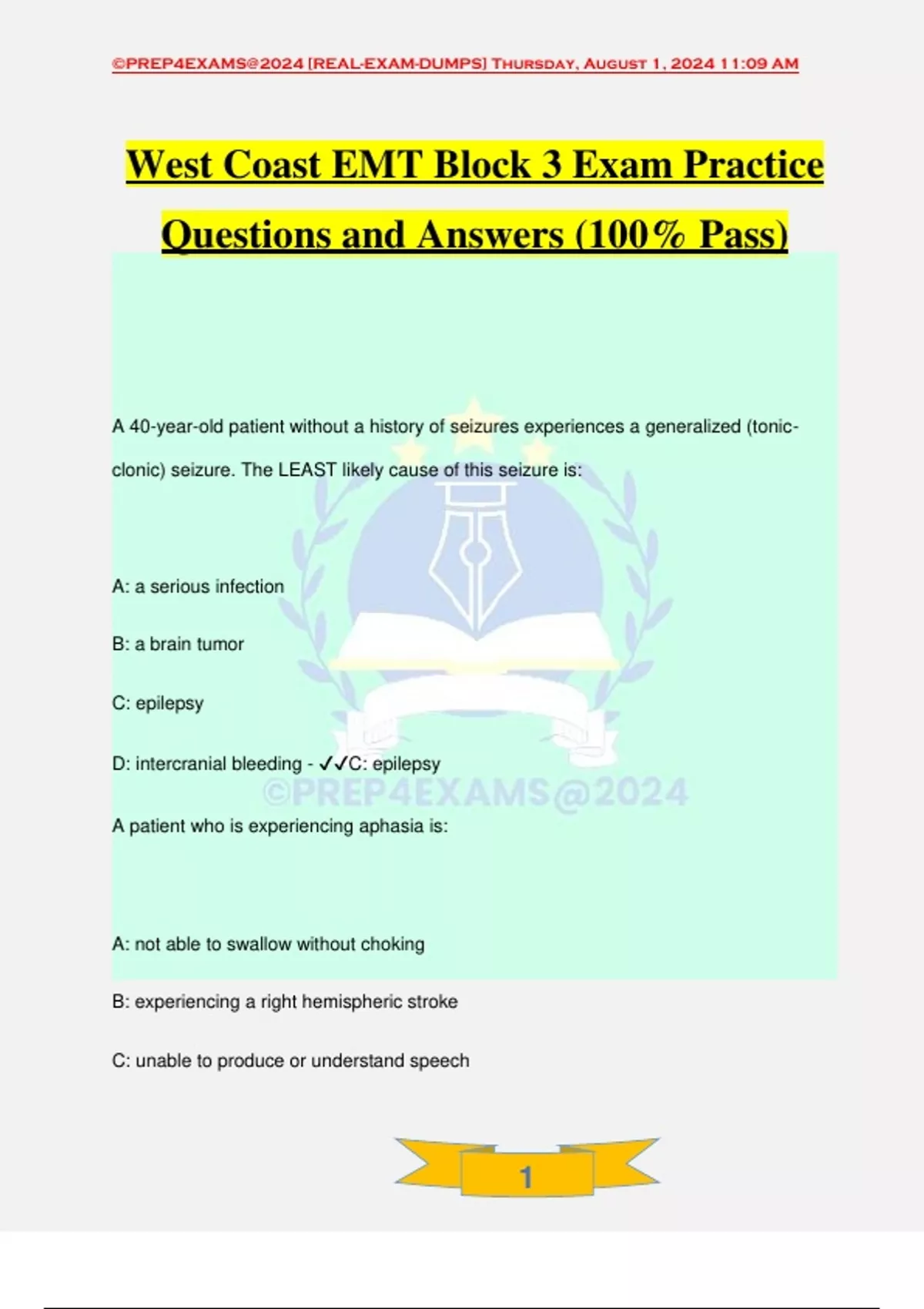 , ©PREP4EXAMS@2024 [REAL-EXAM-DUMPS] Thursday, August 1, 2024 11:09 AM