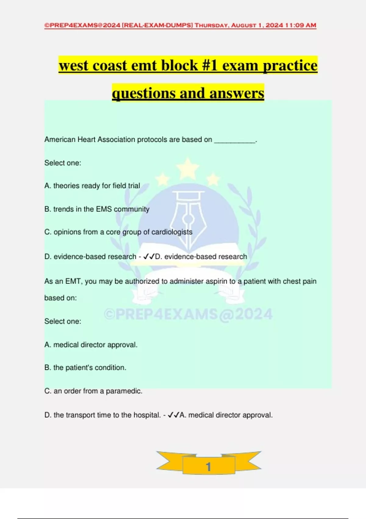 , ©PREP4EXAMS@2024 [REAL-EXAM-DUMPS] Thursday, August 1, 2024 11:09 AM