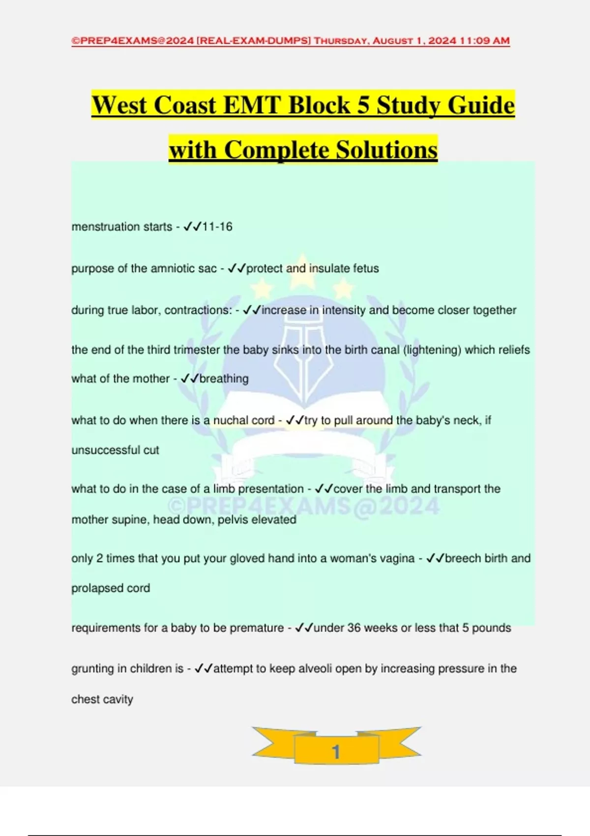 West Coast EMT Block 5 Study Guide with Complete Solutions