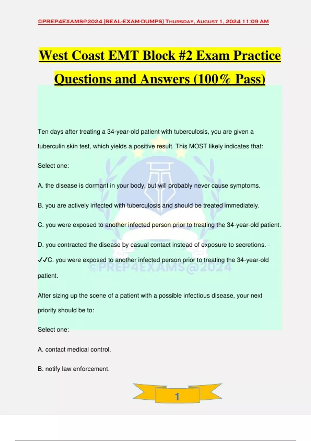 , ©PREP4EXAMS@2024 [REAL-EXAM-DUMPS] Thursday, August 1, 2024 11:09 AM