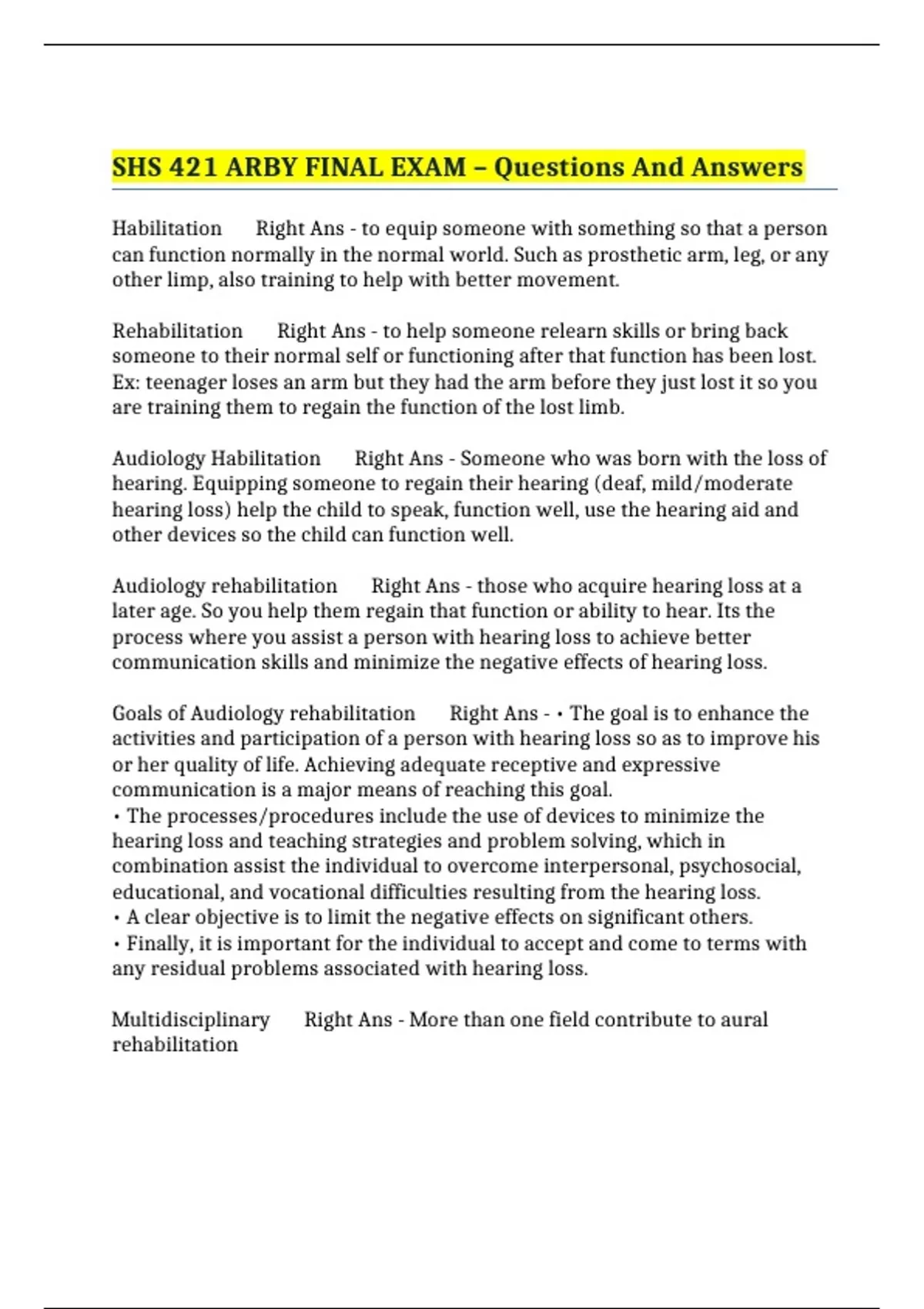 Audiology rehabilitation Right Ans - those who acquire hearing loss at a