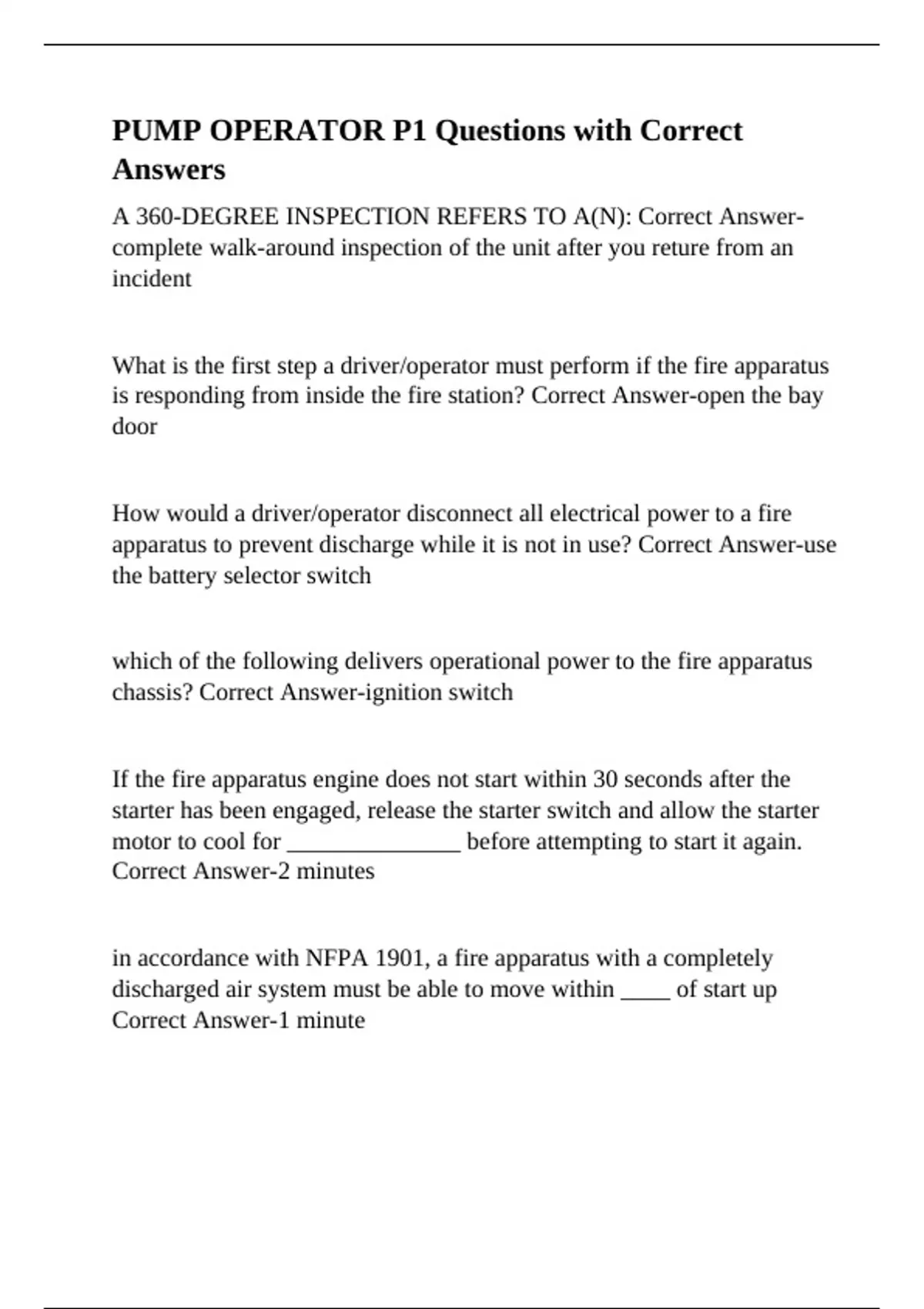 fire apparatus? Correct Answer-100-120 psi
