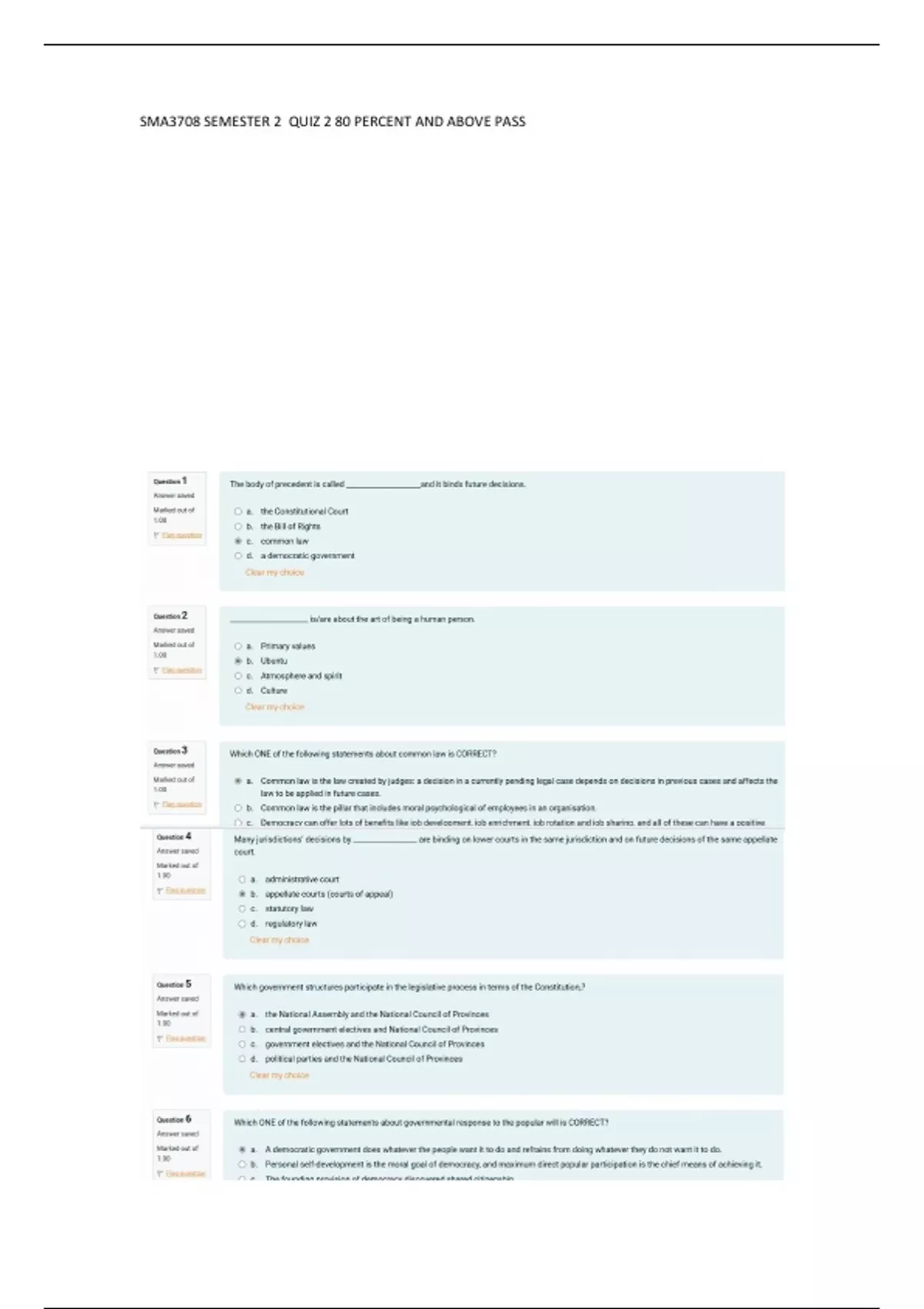 SMA3708 SEMESTER 2 QUIZ 2 80 PERCENT PASS