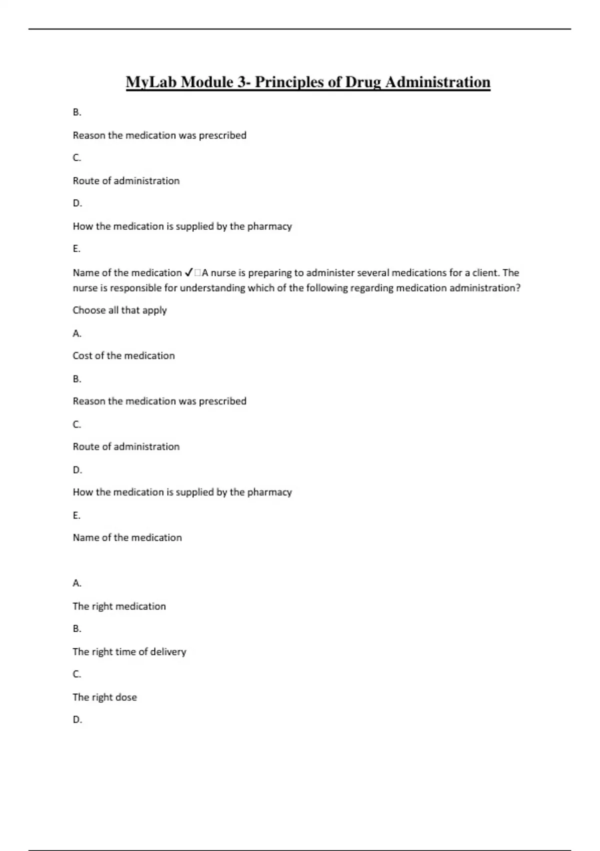 ,The right route of administration ✔️A nurse is preparing medications prior to administration. To
