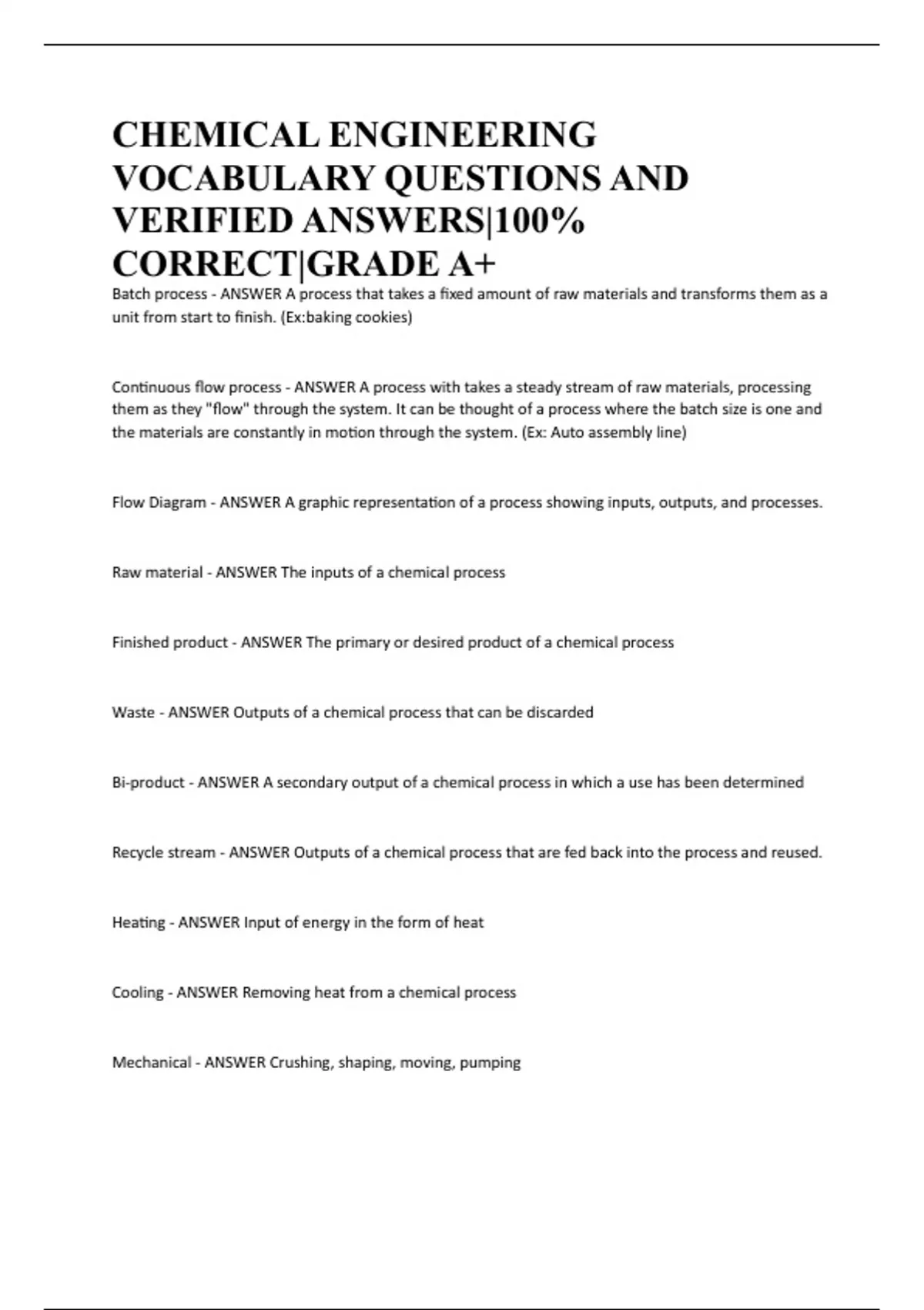 Continuous flow process - ANSWER A process with takes a steady stream of raw materials, processing