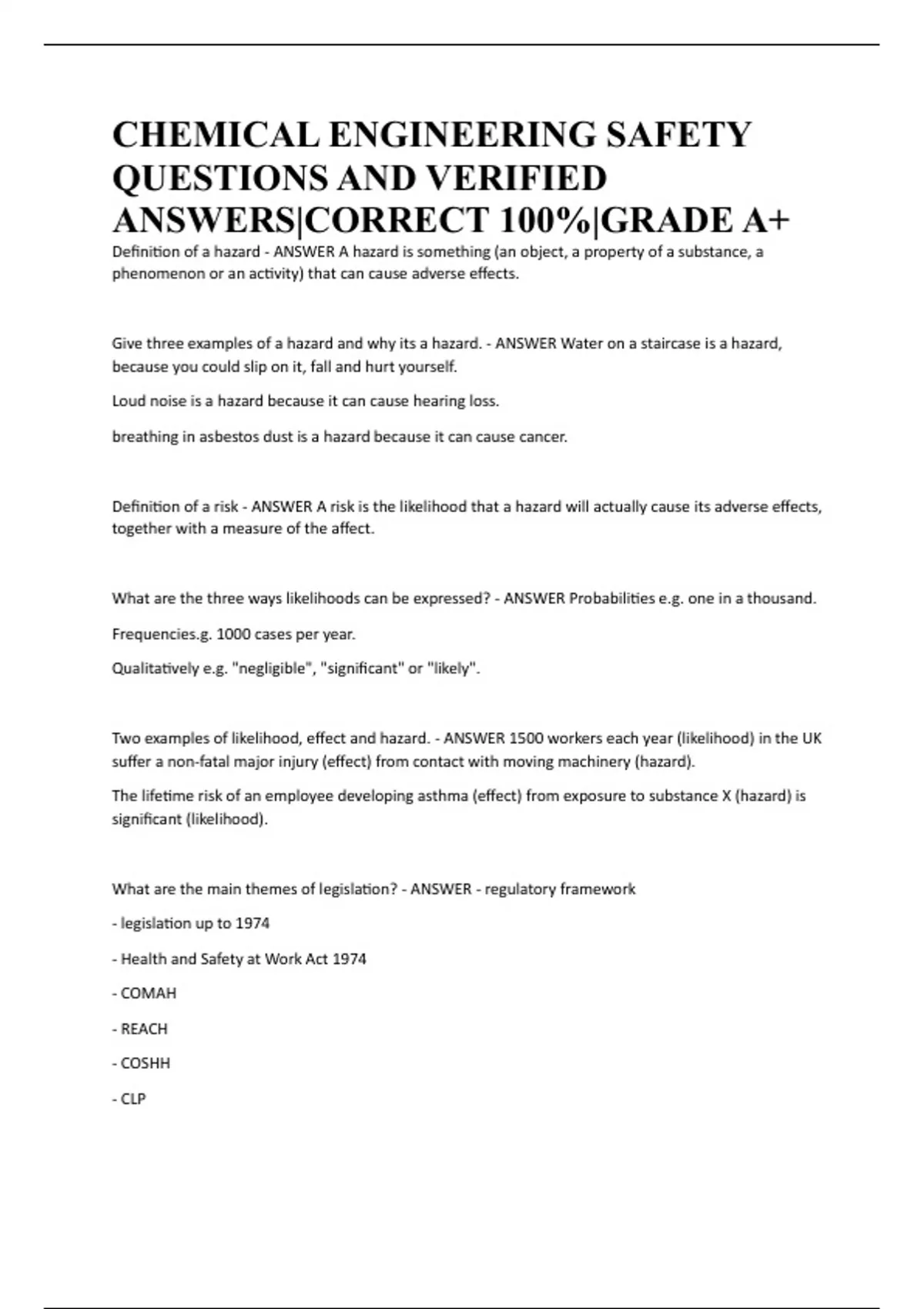 Definition of a hazard - ANSWER A hazard is something (an object, a property of a substance, a