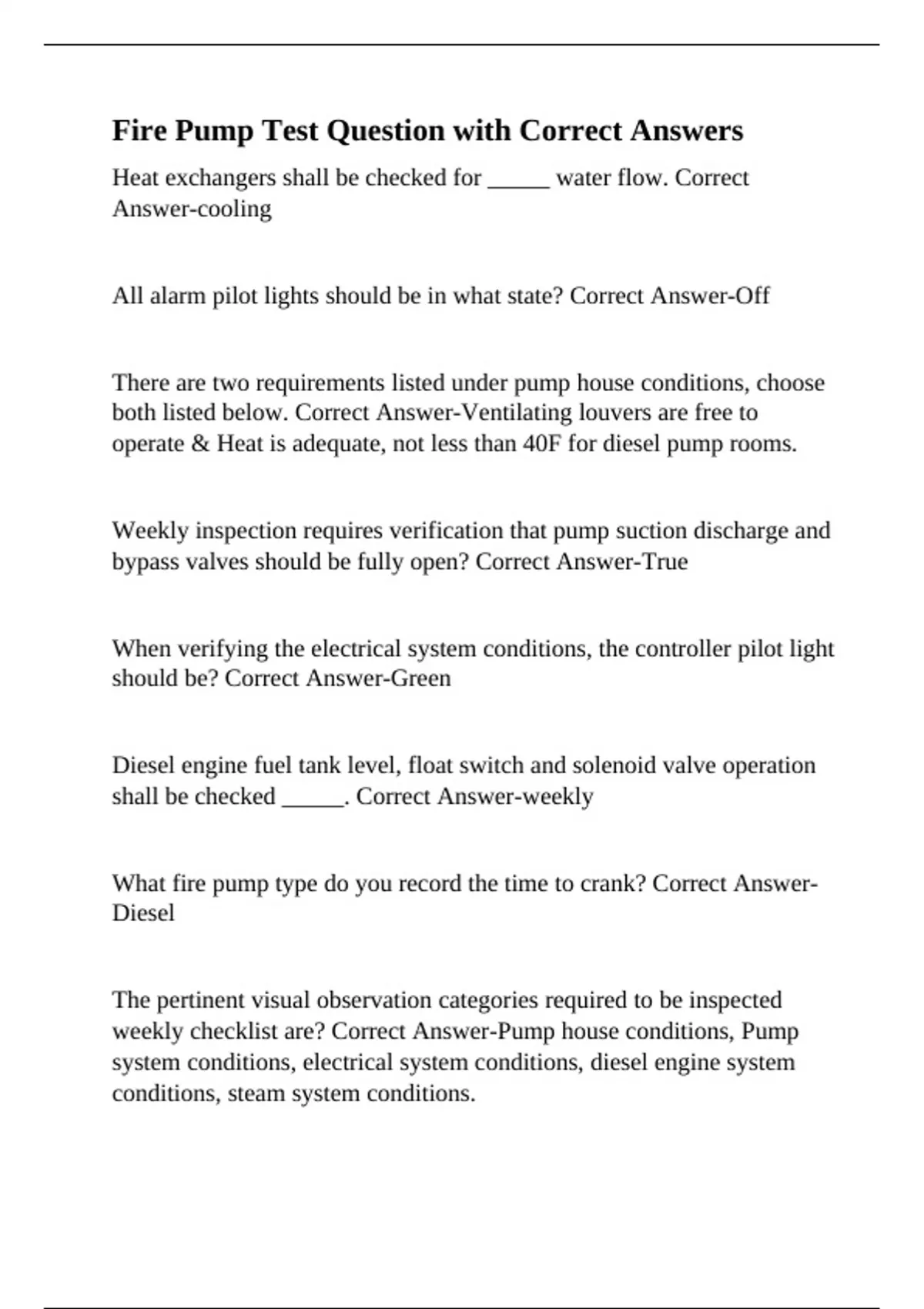 weekly checklist are? Correct Answer-Pump house conditions, Pump