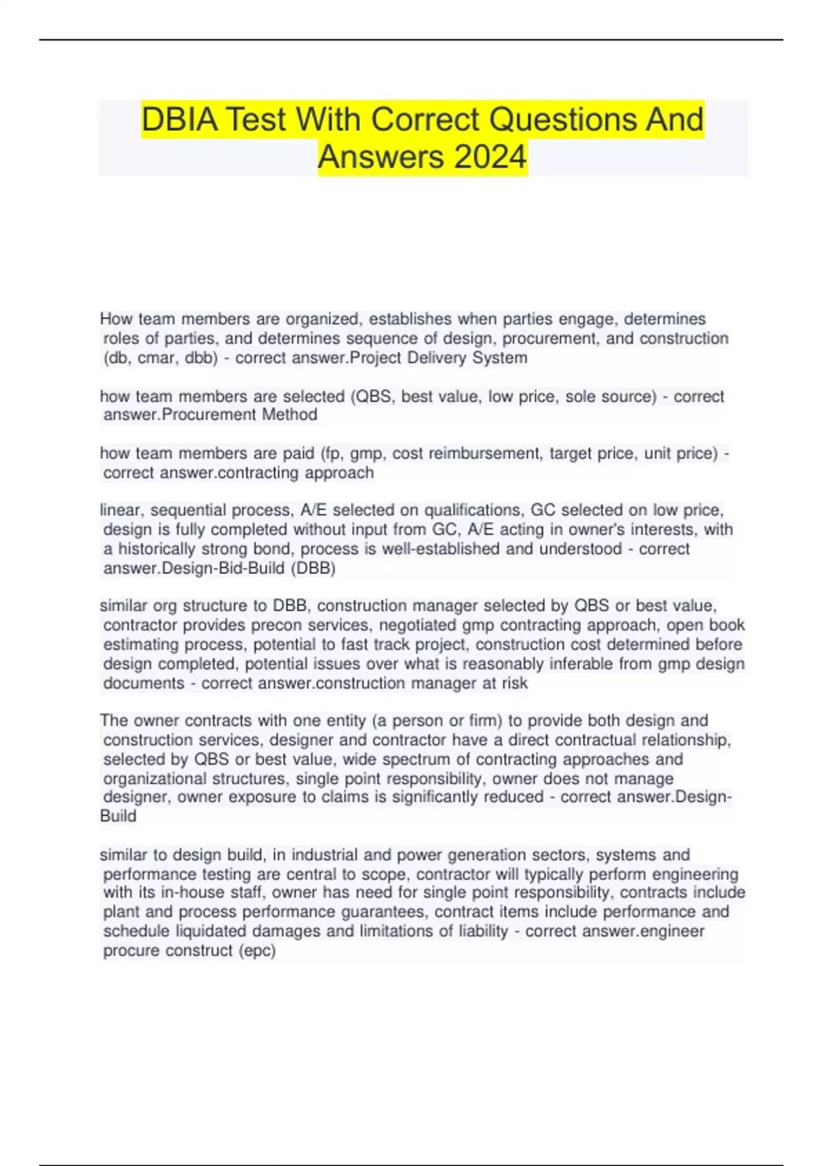 DBIA Test With Correct Questions And