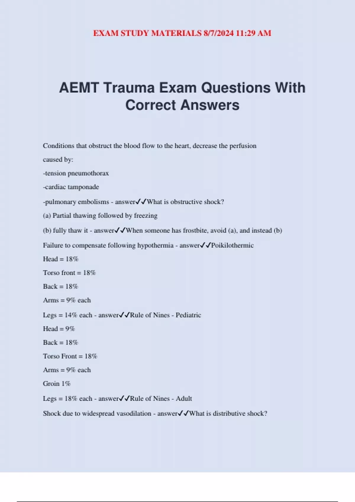 AEMT Trauma Exam Questions With