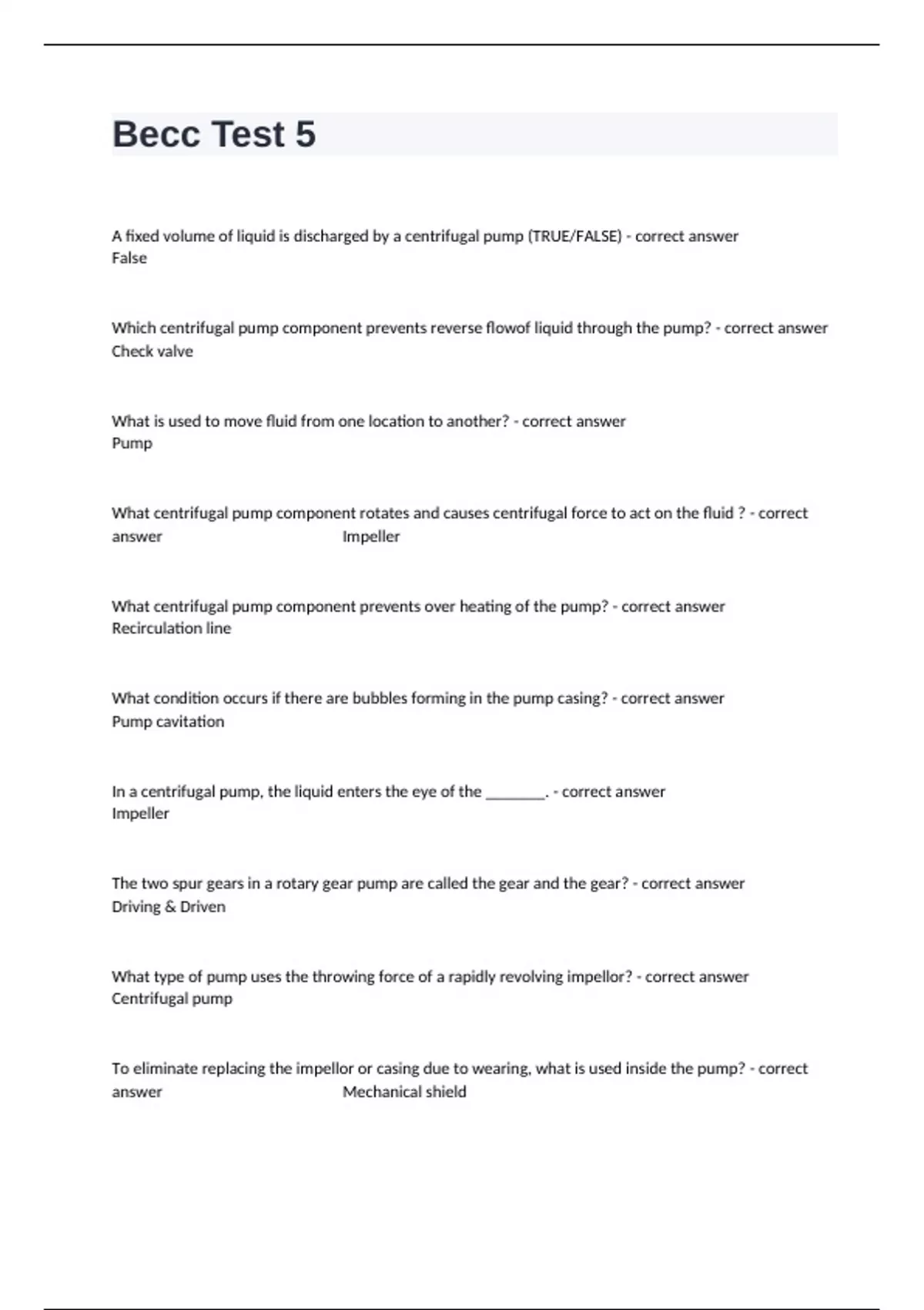 Which centrifugal pump component prevents reverse flowof liquid through the pump? - correct answer