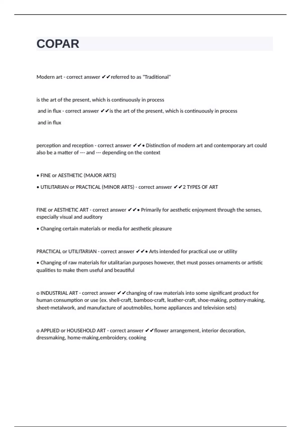 • UTILITARIAN or PRACTICAL (MINOR ARTS) - correct answer ✔✔2 TYPES OF ART