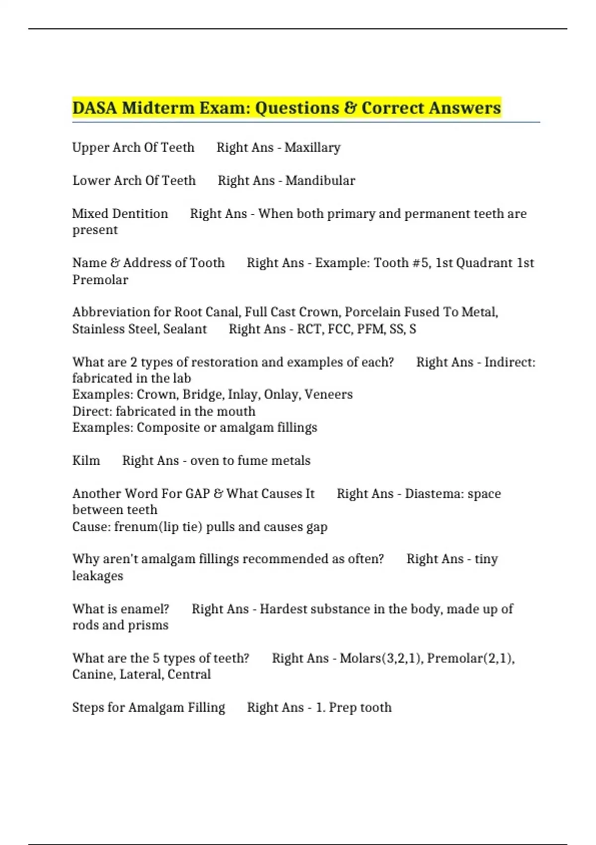 Steps for Amalgam Filling Right Ans - 1. Prep tooth